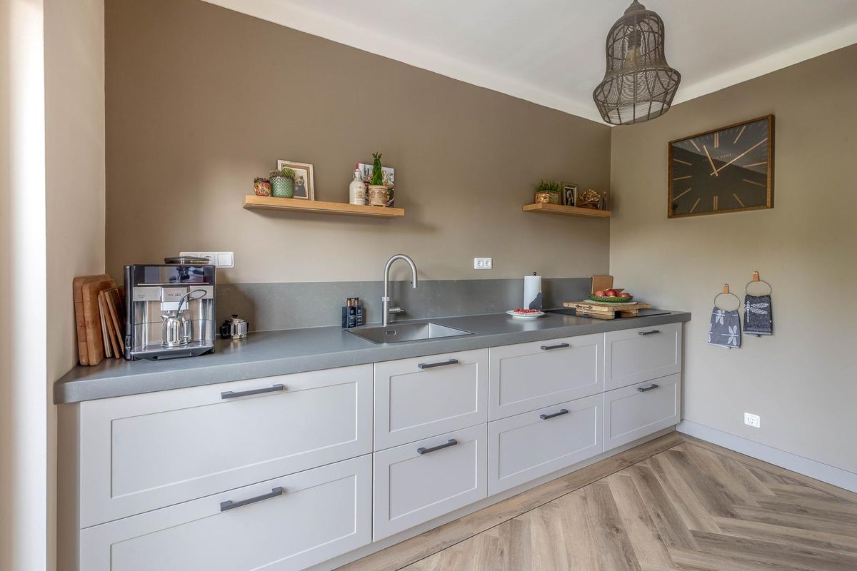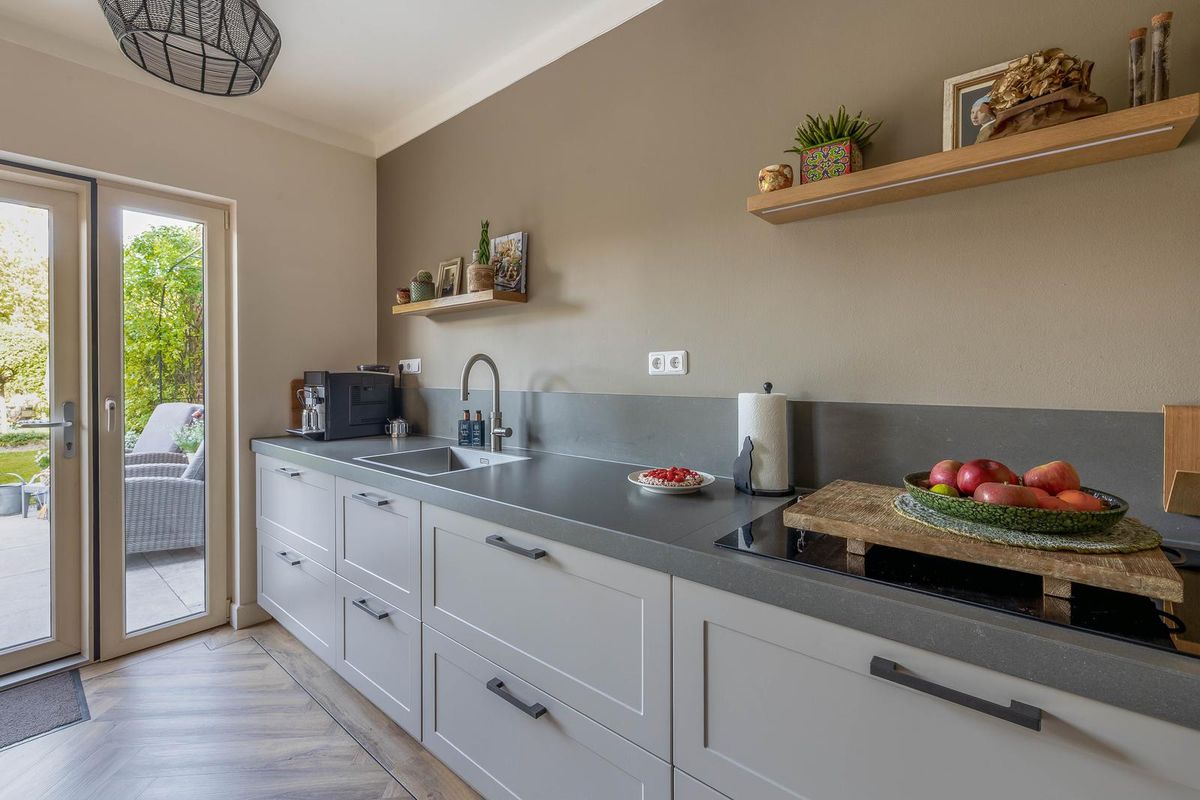De open keuken (2022) is modern en compleet uitgerust met een koelkast, diepvries, combi-oven/magnetron, stoomoven, Quooker en een inductiekookplaat met geïntegreerde afzuiging – ideaal voor de kookliefhebber! Vanuit hier loop je ook zo de tuin in.