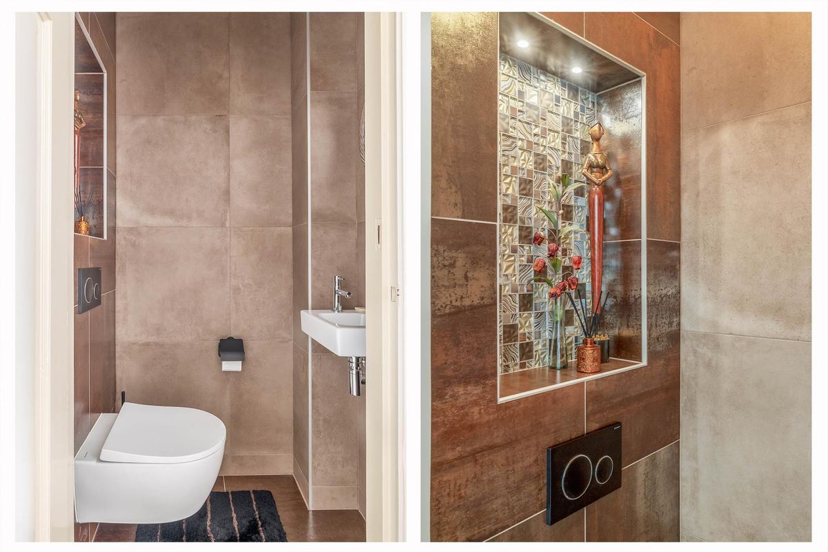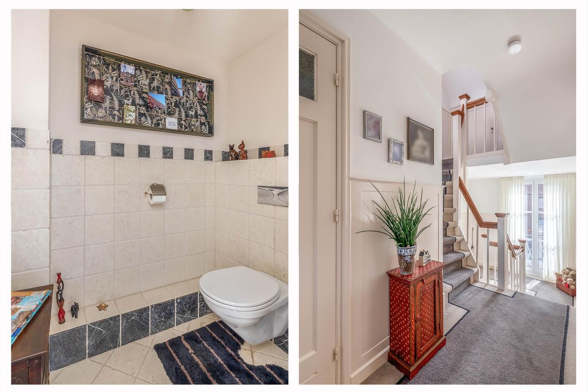 Bij binnenkomst valt meteen de verzorgde uitstraling op. In de hal bevinden zich het toilet met fonteintje en de toegang tot het prachtige trappenhuis.
