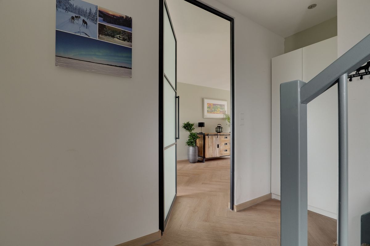 De gehele begane grond is voorzien vloerverwarming met een mooie PVC visgraat vloer en heeft eigentijdse, sausklaar gestucte wanden.