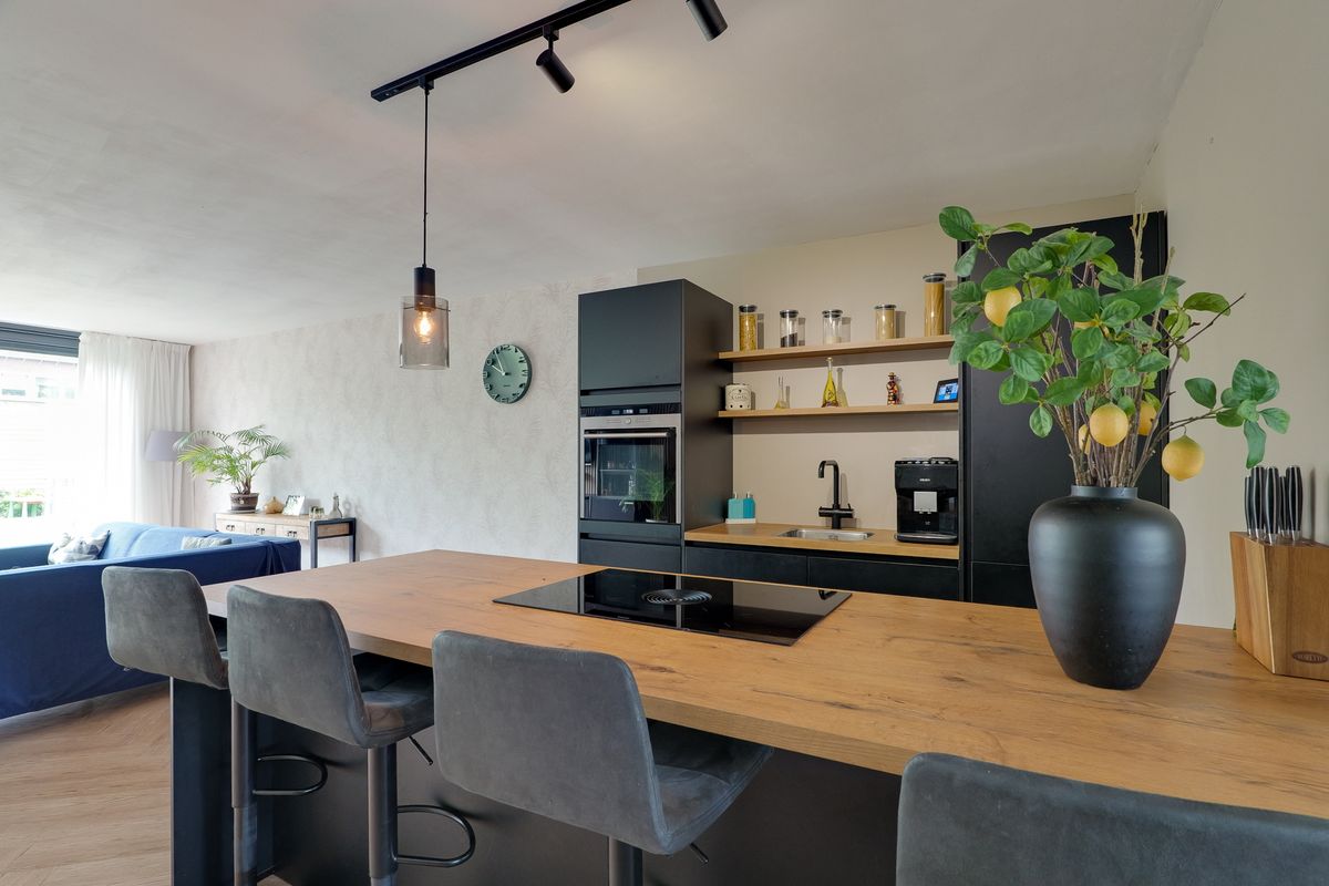 Entree/garderobe met trapopgang, meterkast, toilet met fonteintje en toegang tot de zeer ruime living van 54m2. Centraal bevindt zich de moderne zwarte keuken (2022) met een kastenwand en een kookeiland met eetbargedeelte. De keuken is voorzien van de volgende inbouwapparatuur: een koelvriescombinatie, een inductiekookplaat met geïntegreerde afzuiging, een vaatwasser, een zelfreinigende oven en een kokend waterkraan. Het zitgedeelte van de living is tuingericht en beschikt van een gevelbrede schuifpui.