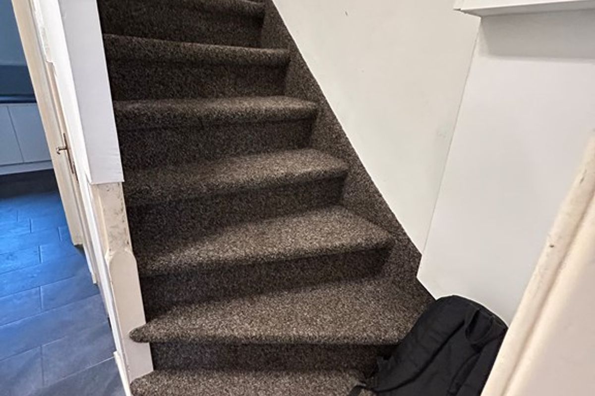 Overloop 2,35 x 0,85 met novilon en inbouwspots.