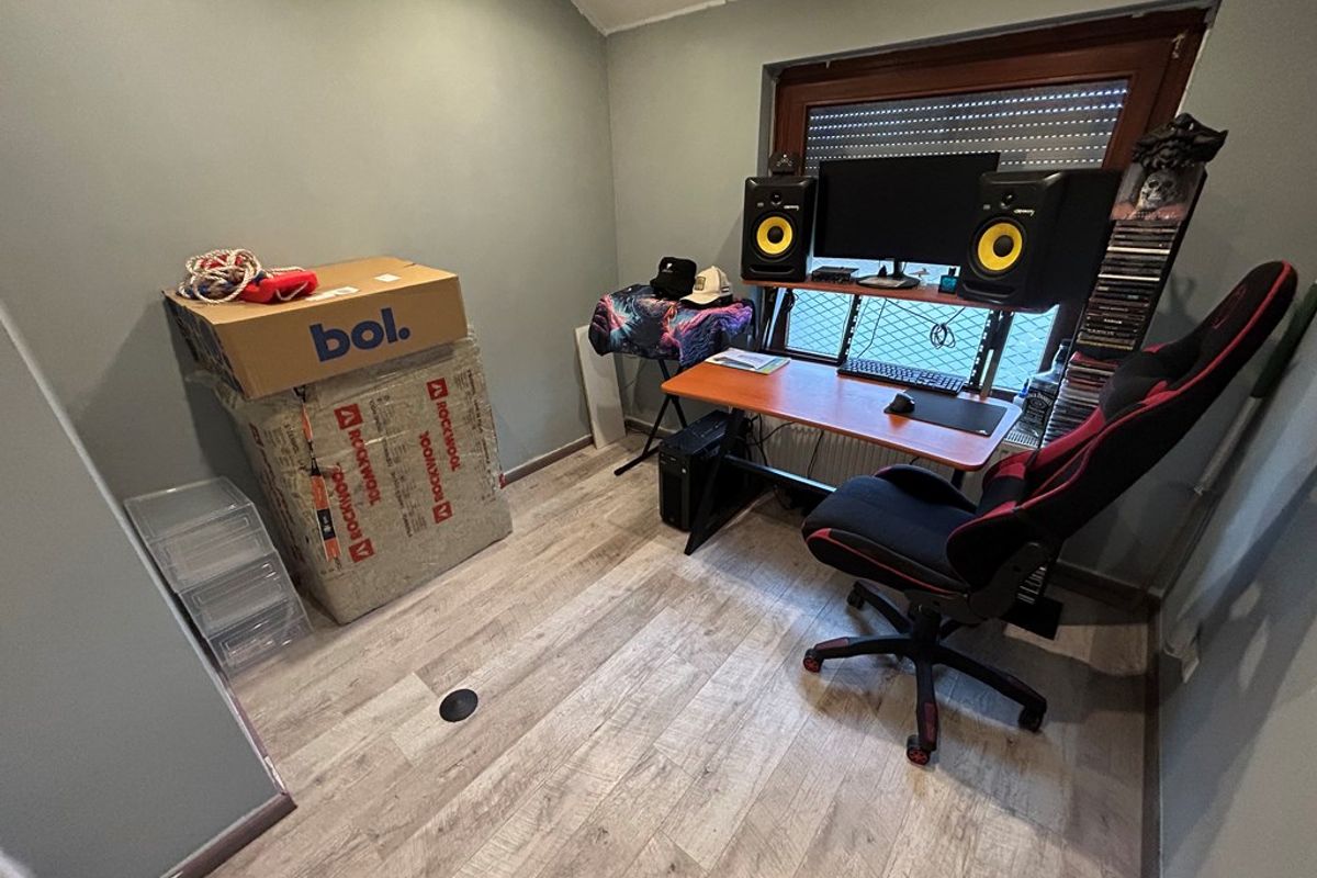 Slaapkamer 3: 2,75 x 2,75 met novilon, inbouwspots, muurkast en vlizotrap naar zolder.