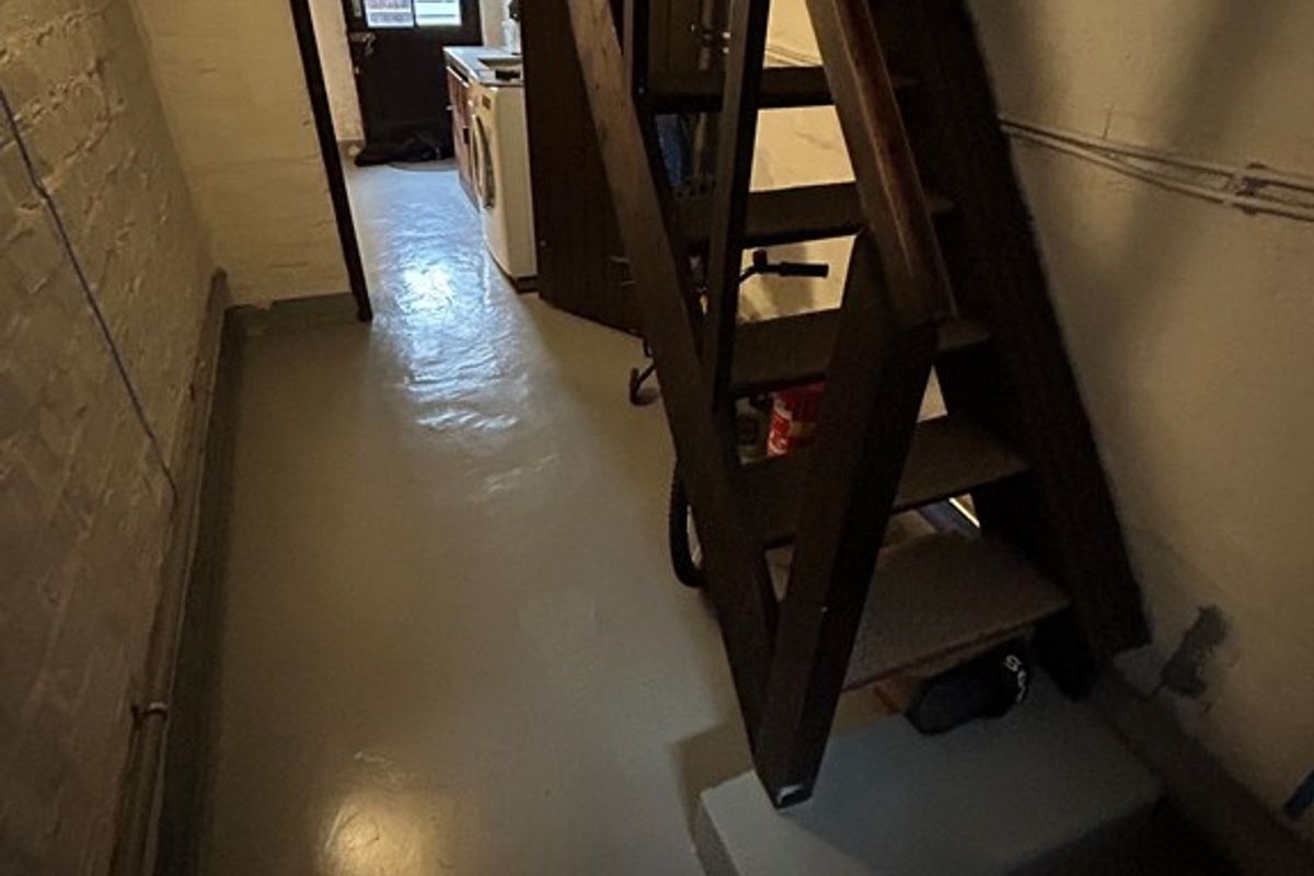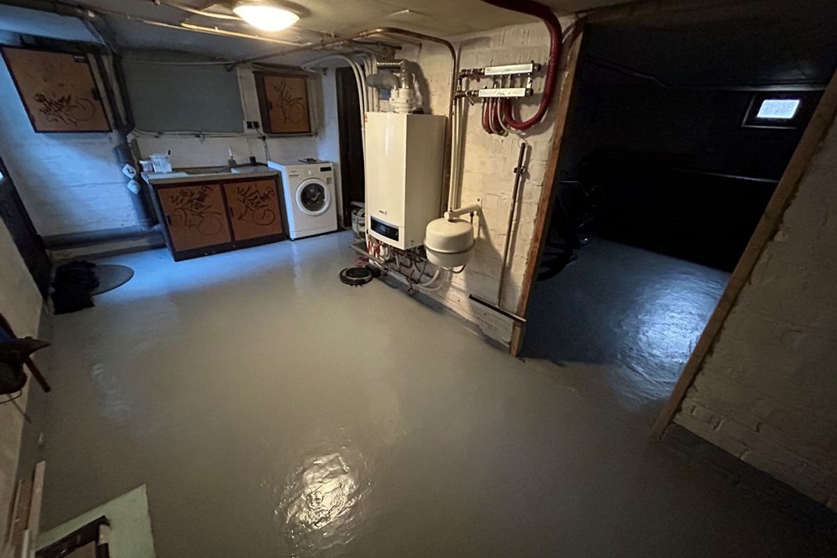 Wasruimte 5,65 x 2,80 met deur naar berging en achtertuin, aansluitingen was-apparatuur, cv-combiketel Nefit Eco Comfort van 2018 (gehuurd) en aanrechtblok.