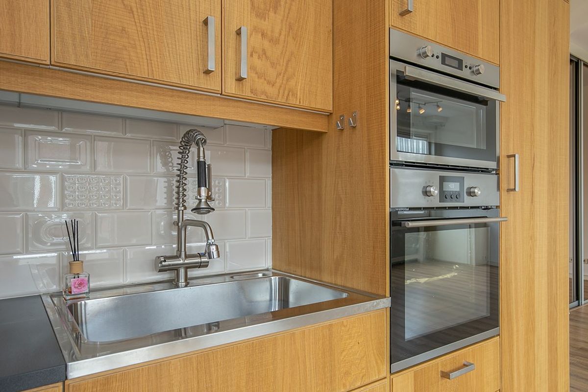 Dankzij de gunstige hoekligging geniet u in zowel de woonkamer als de eetkamer/ open keuken van de vele raampartijen, die de ruimte vullen met natuurlijk licht. De keuken is netjes onderhouden, voorzien van diverse inbouwapparatuur en biedt voldoende werkruimte om maaltijden te bereiden. Vanuit de keuken stapt u zo het balkon op, gelegen op het noordoosten, met uitzicht op de rustige straat en de groenstrook.