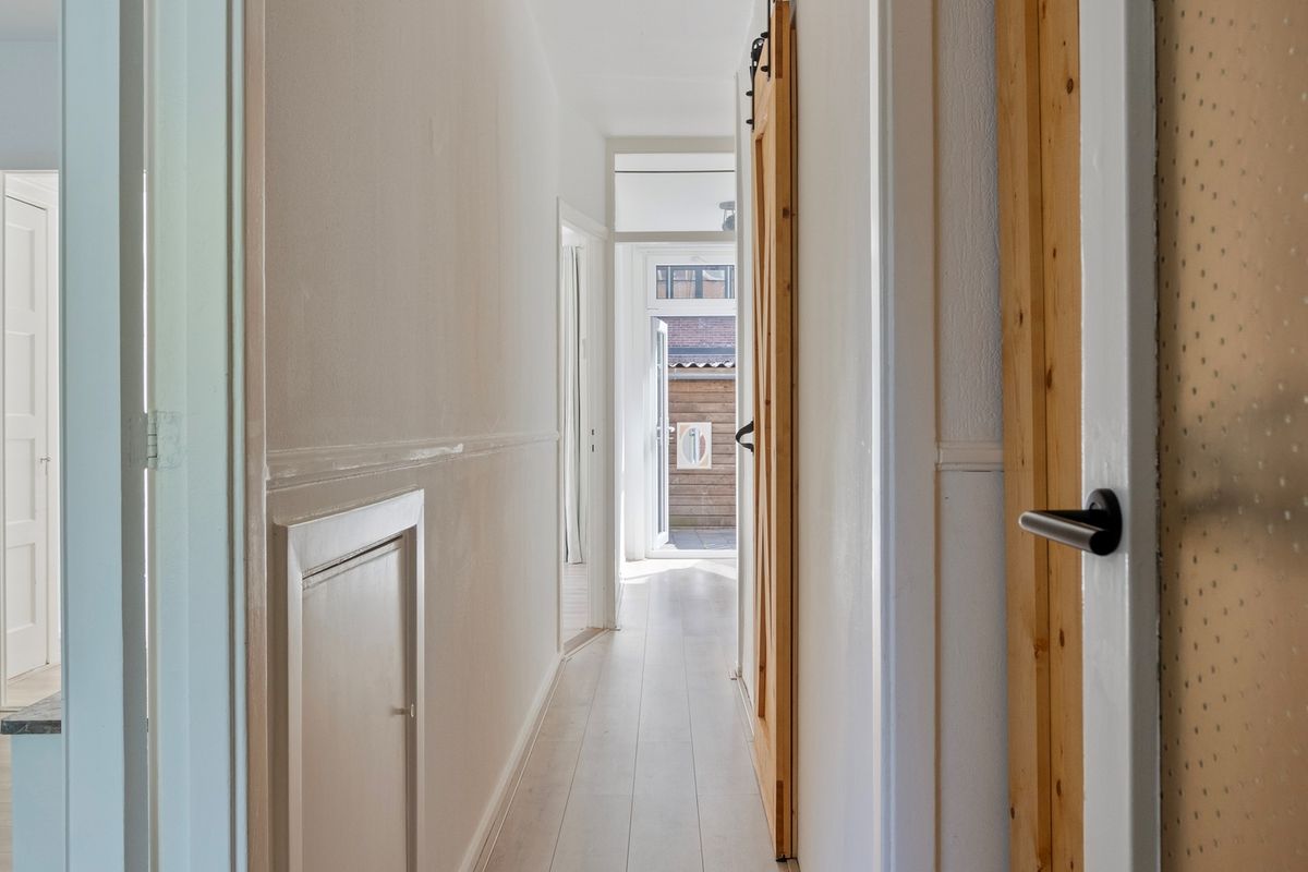 Eigen entree met hal die toegang geeft tot alle vertrekken. De lichte woonkamer ligt aan de voorzijde en de en-suite deuren geven toegang tot de slaapkamer aan de achterzijde. De moderne keuken is in goede staat en ligt eveneens aan de achterzijde. Het toilet en de badkamer zijn recent gerenoveerd en netjes afgewerkt. In de hal vind je een bergkast met handige opstelplaats voor de wasmachine.