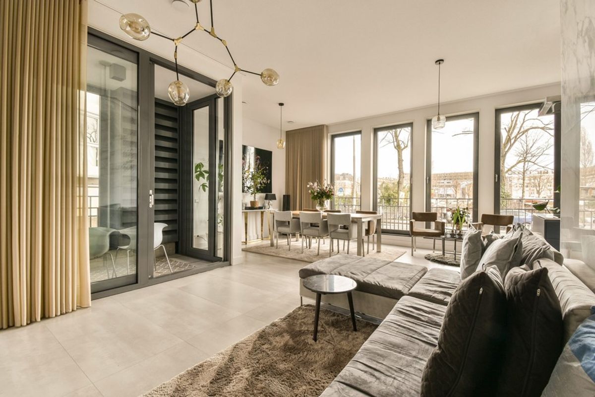 Recently completed ground-floor apartment of approx. 90 m², featuring an optimal layout, high ceilings (3.18 m), two spacious bedrooms, a modern bathroom, and a generous living area with a private patio. The front of the apartment offers a beautiful view of the Amstel River. Located in a prestigious new development built in 2022, the building offers elevator access and underground parking. Perfectly situated on the most desirable stretch of the Amsteldijk, directly across from the Amstel Hotel, De IJsbreker, and the Royal Carré Theatre.