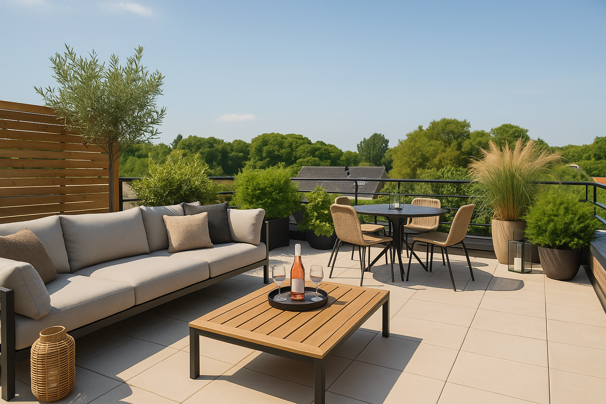 Er is voldoende ruimte voor een loungeset en een jacuzzi (ter overname aangeboden), ideaal om zomerse avonden met vrienden of familie door te brengen.