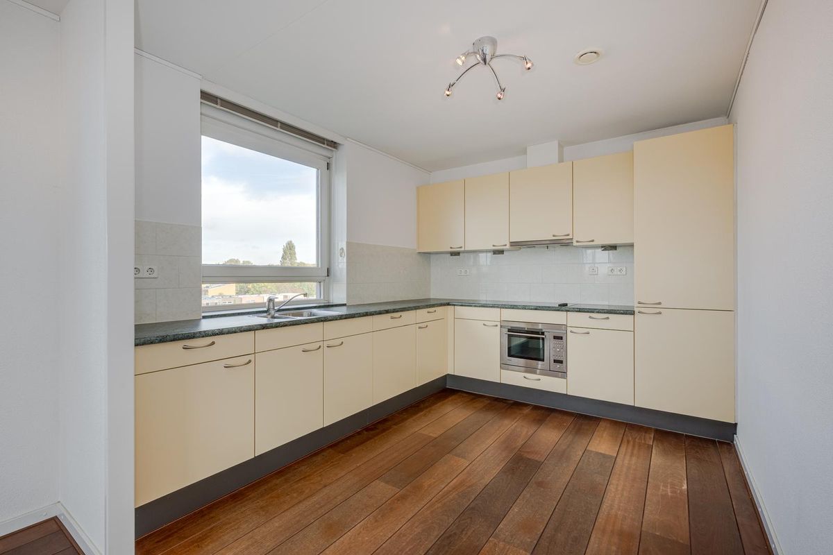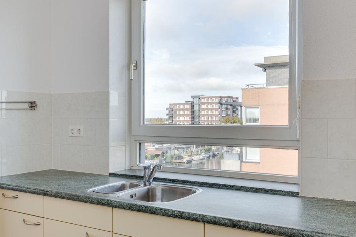 Groot VIER-KAMER HOEK-appartement met uitzicht over water en met een privé parkeerplaats onderin het appartementencomplex MET LIFT. Dit appartement ligt bijzonder goed en is extra interessant. Waarom? Omdat de ligging ideaal is (ver van de brug af en op de 4e etage). Appartementen op deze verdieping hebben geen balkon boven zich, dus extra veel lichtinval! De woning verkeert verder in een zeer goede staat. De prachtige Jatoba houten vloer is nog erg mooi. De badkamer en keuken zijn wel wat ouder maar nog steeds erg netjes. De ruimte en lichtinval maken dit appartement tot een gewild object. Komt u (snel) kijken?