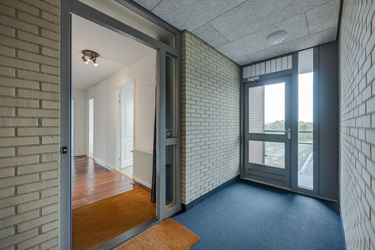 Indeling: entree appartementencomplex, lift of trap naar 4e verdieping. Mooie hal. Entree appartement met drie deuren naar drie slaapkamers, een deur naar een toilet, deur naar badkamer en meterkast. Deur naar zeer grote en lichte woonkamer met open keuken. Schuifpui naar royaal balkon.