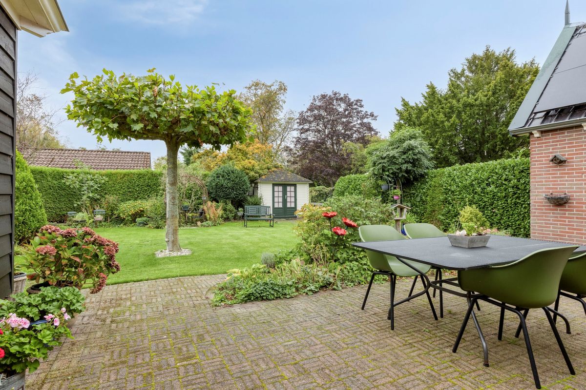 Buiten geniet je van een eigen oprit, een stenen garage met vliering, een ruime, groene tuin met houten berging en volop privacy. De tuin ligt op het zuidwesten, wat zorgt voor zon van ’s morgens vroeg tot in de late avond – de ideale plek om te ontspannen met een goed glas wijn of een barbecue.