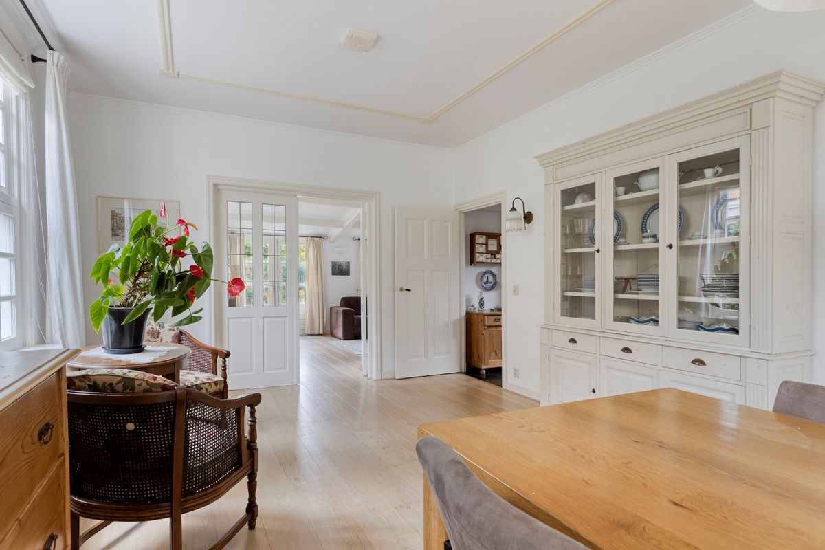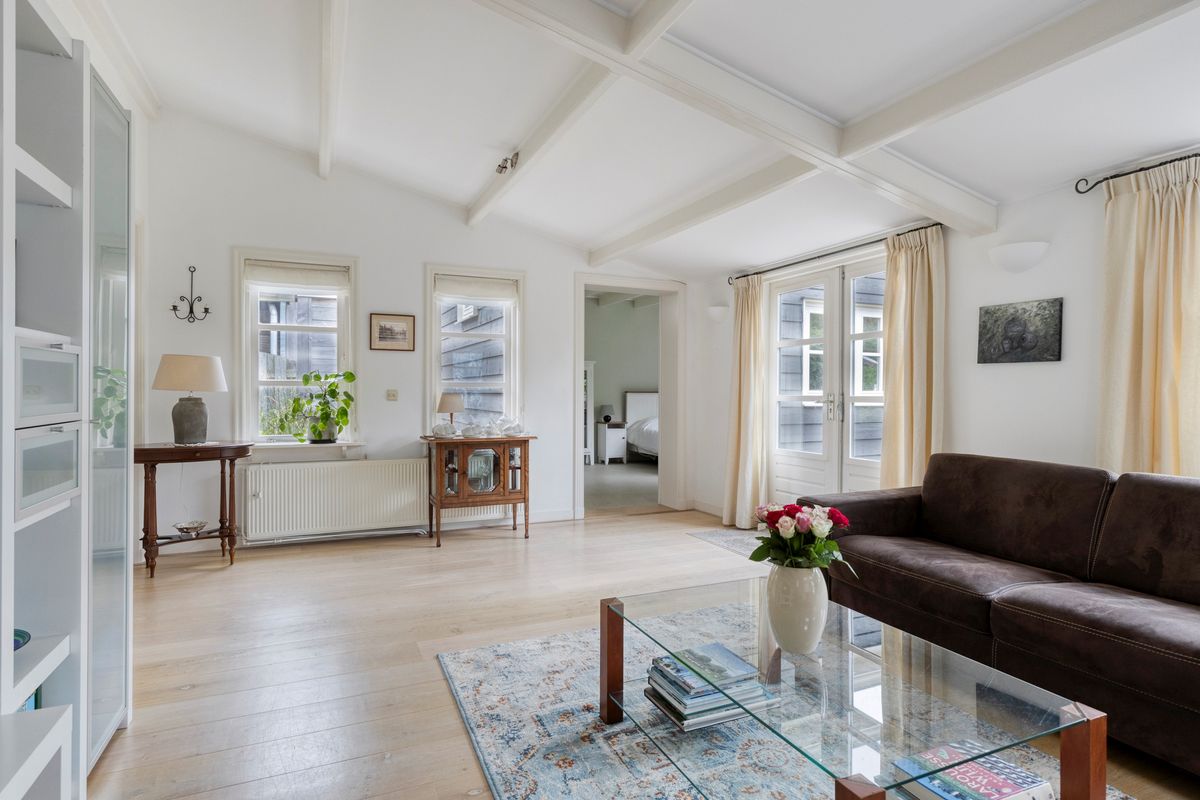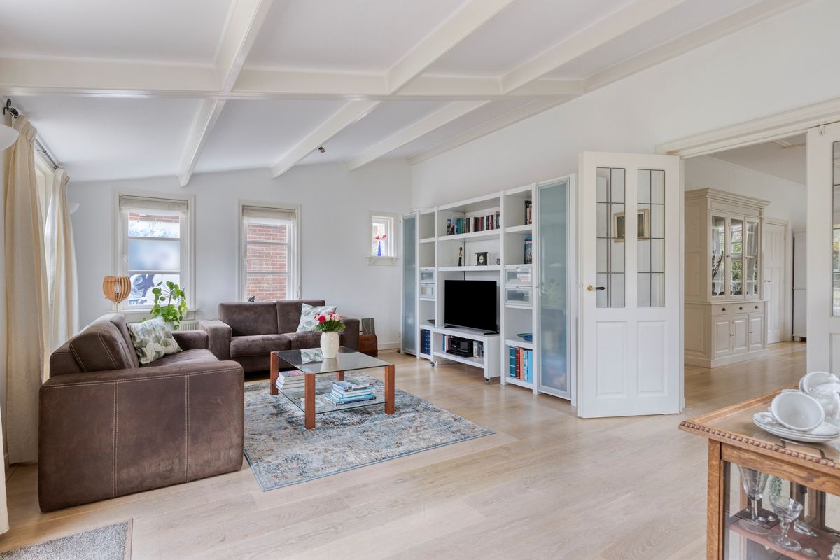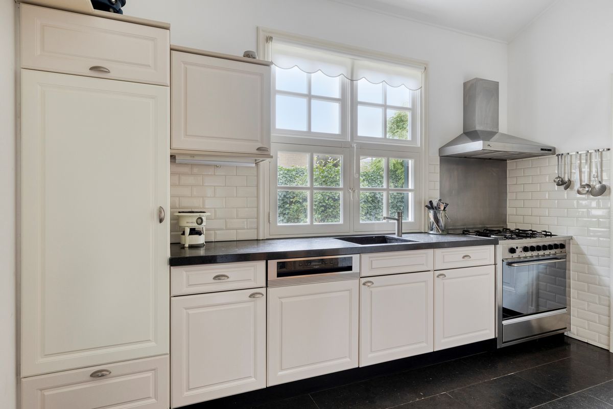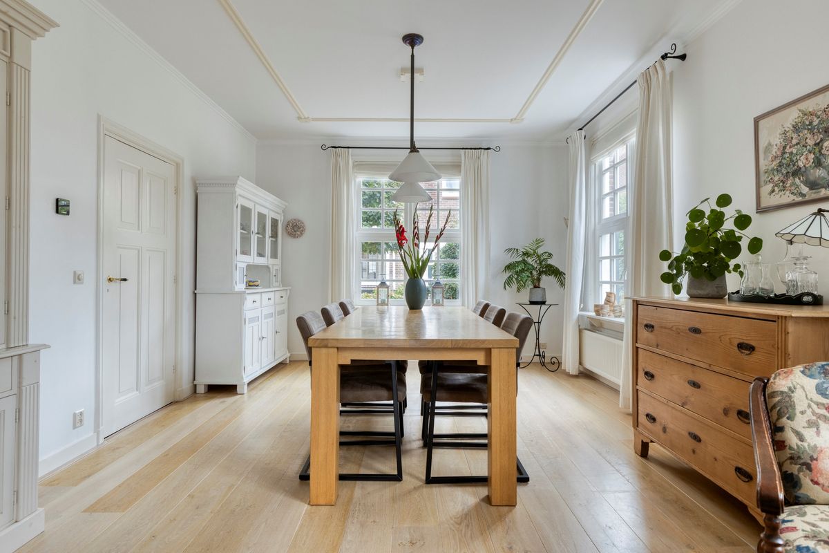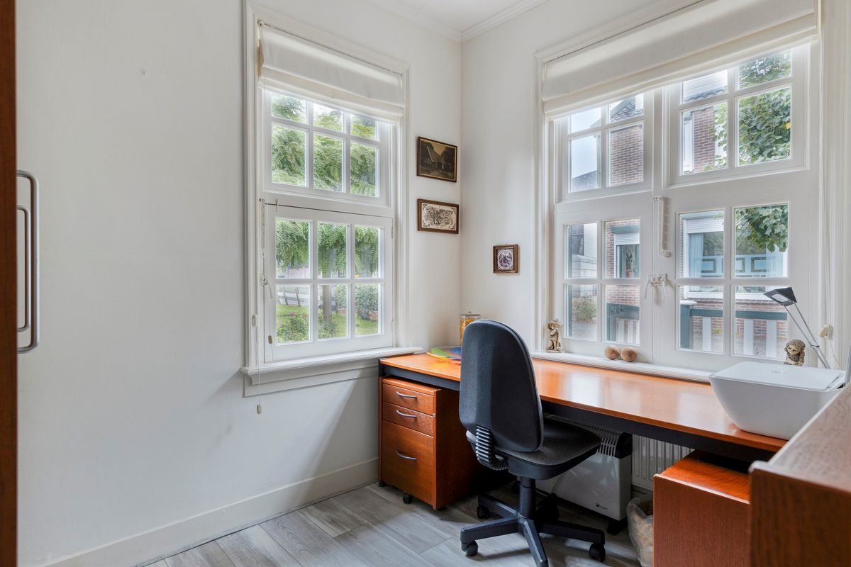 Binnenkomst via een sfeervolle hal met toegang tot het toilet en een kamer die momenteel in gebruik is als kantoor. De woonkamer is licht, ruim en hoog, met authentieke details en een fijne sfeer. De dichte, knusse keuken beschikt over een handige voorraadkast en inbouwapparatuur. Aan de achterzijde is de zithoek gesitueerd met openslaande tuindeuren naar de zonnige tuin. Op de begane grond bevindt zich tevens een ruime slaapkamer met eigen doucheruimte en wastafel – perfect voor gelijkvloers wonen.