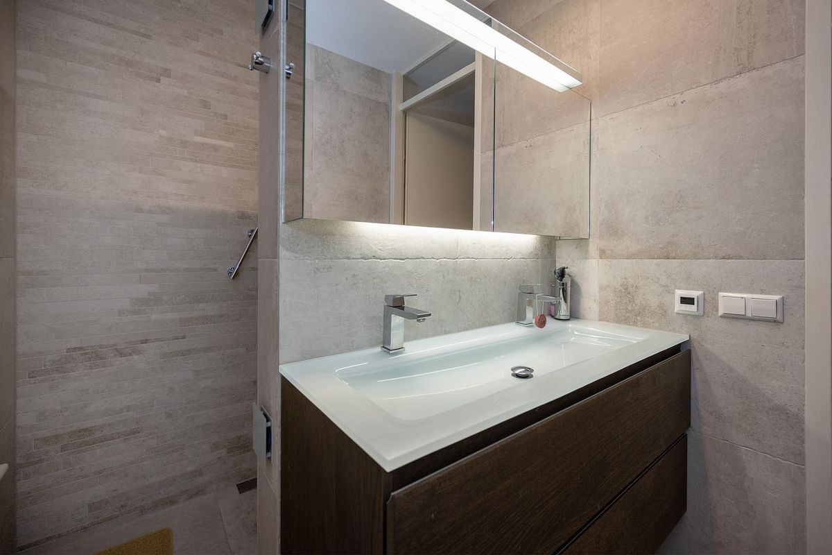 De badkamer en separate wc zijn gerenoveerd in 2022. De badkamer is voorzien van vloerverwarming en beschikt over een luxe inloopdouche met Sunshower, een dubbele wastafel met meubel en praktische opbergruimte.