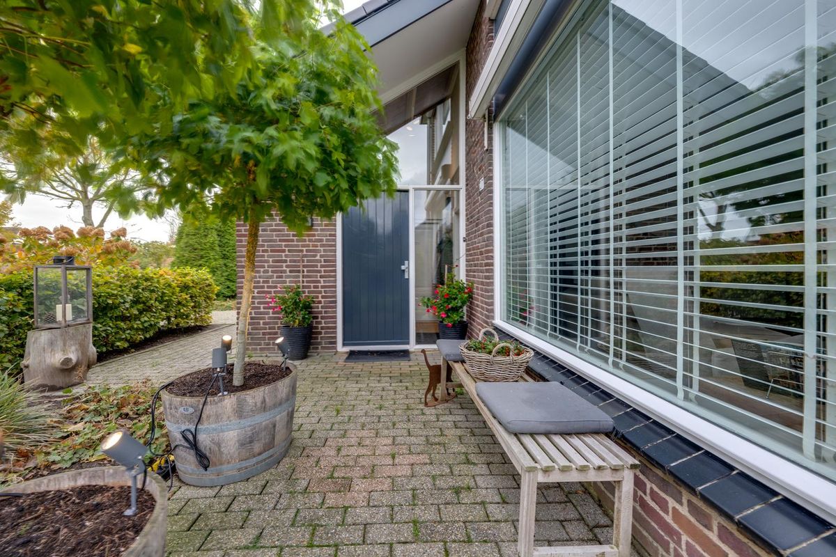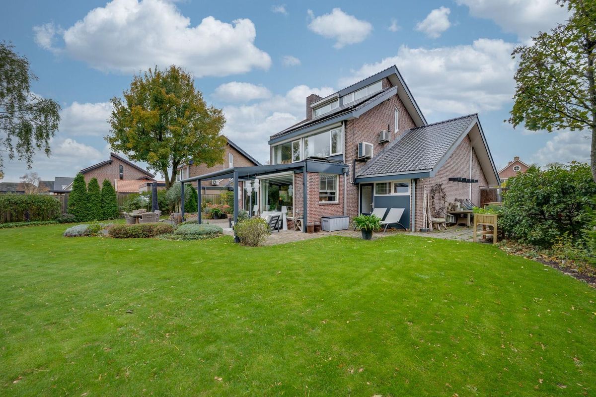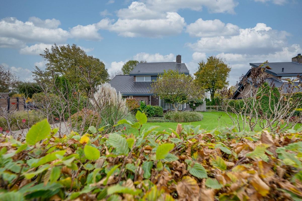 Rondom de woning ligt een fraai aangelegde tuin, ontworpen door een architect, met veel groen, beschutte zithoeken en optimale privacy. Een heerlijke, ruime overkapping aan de achterzijde van de woning maakt dat je snel buiten kunt vertoeven om te genieten van de fantastische tuin en het vrije uitzicht over de landerijen. Aan de voorzijde bevindt zich een ruime oprit met parkeergelegenheid voor meerdere auto’s. De achtertuin biedt volop zon én schaduwplekken, waar je heerlijk kunt genieten van het buitenleven.