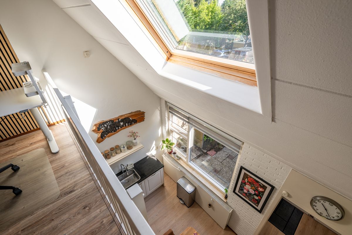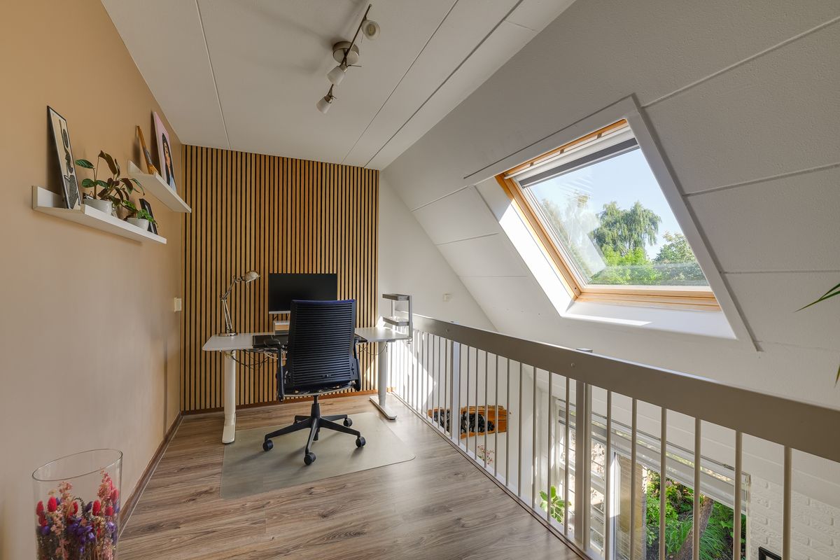 Op de eerste verdieping wacht je eigen ‘relax floor’: een royale slaapkamer met uitzicht over de tuin en een moderne badkamer. Douchen onder de regendouche of ontspannen in bad – het voelt als een mini-spa. De overloop doet nu dienst als studeerplek met uitzicht over de keuken: ideaal voor thuiswerken of een rustig hoekje voor de kids.