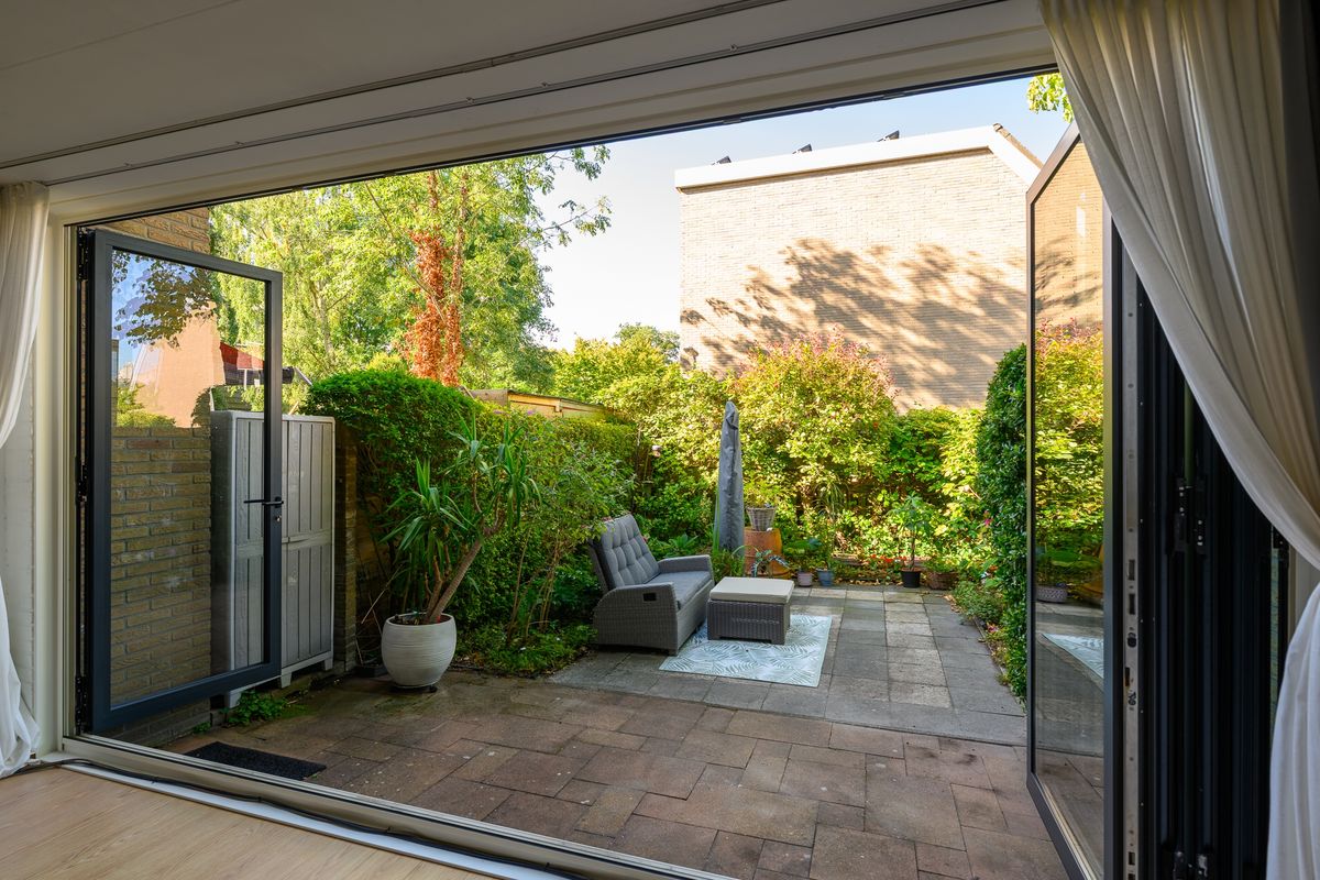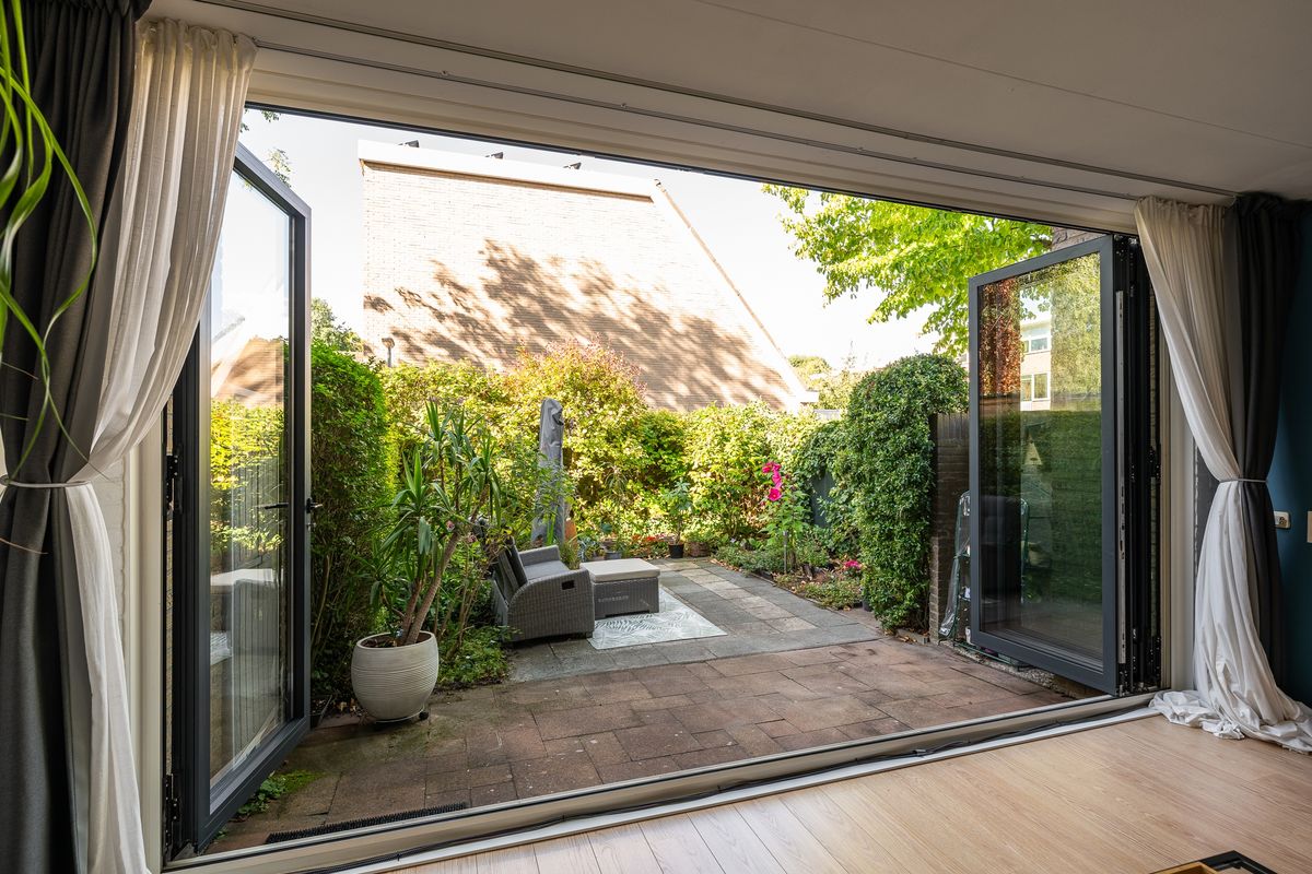 • Light and airy: Spacious living room with laminate flooring and enormous sliding glass doors that can be fully opened. Indoors and outdoors flow seamlessly together here. • Garden fun: The backyard is green, sunny, and intimate. Here you can lounge, barbecue, and watch the kids play.