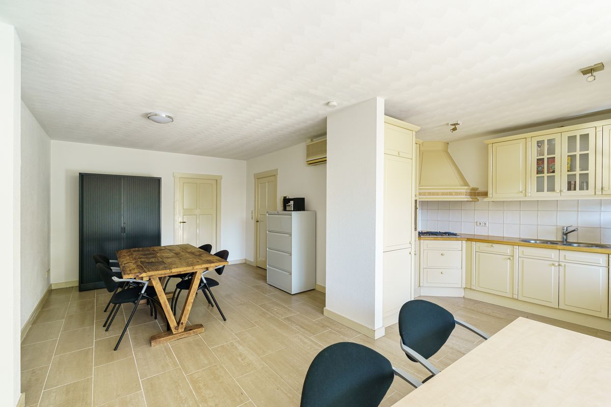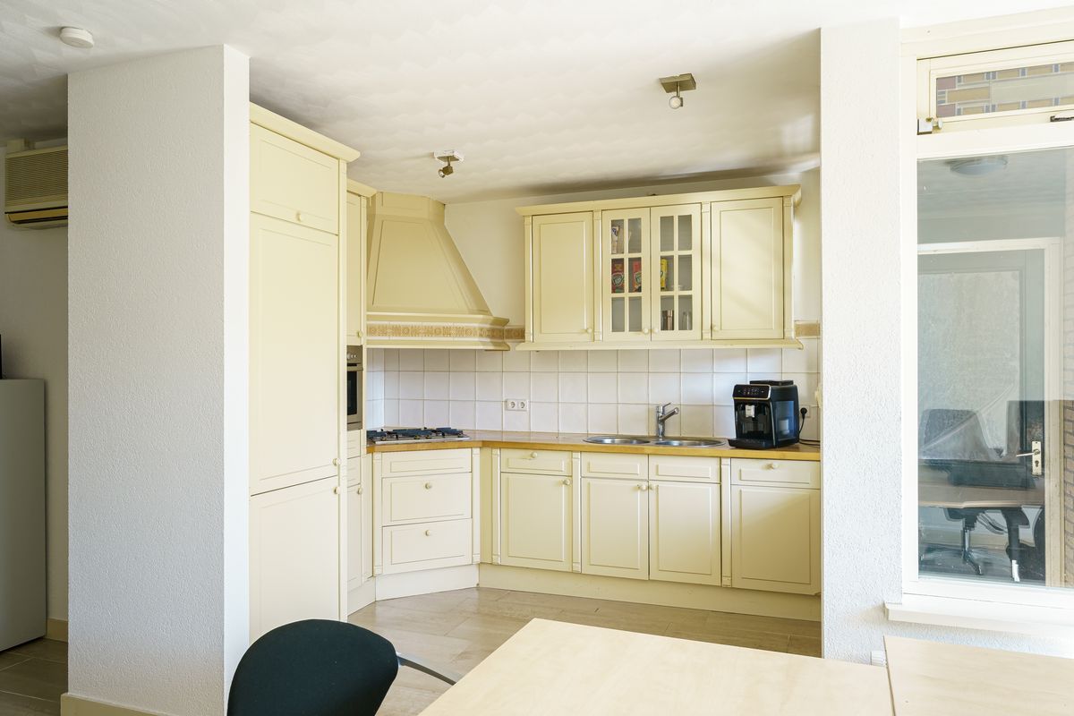 Op de eerste verdieping kom je via de overloop in een bijzonder grote kamer (mogelijk om op te delen in twee kamers). In de zijkamer aan de voorzijde is een tweede keuken, wat deze etage ook zelfstandig bruikbaar maakt. Aan de achterzijde is er toegang tot een terras van bijna 9m2. De nette badkamer op deze verdieping is royaal en compleet, met een douche, ligbad, toilet en wastafel.