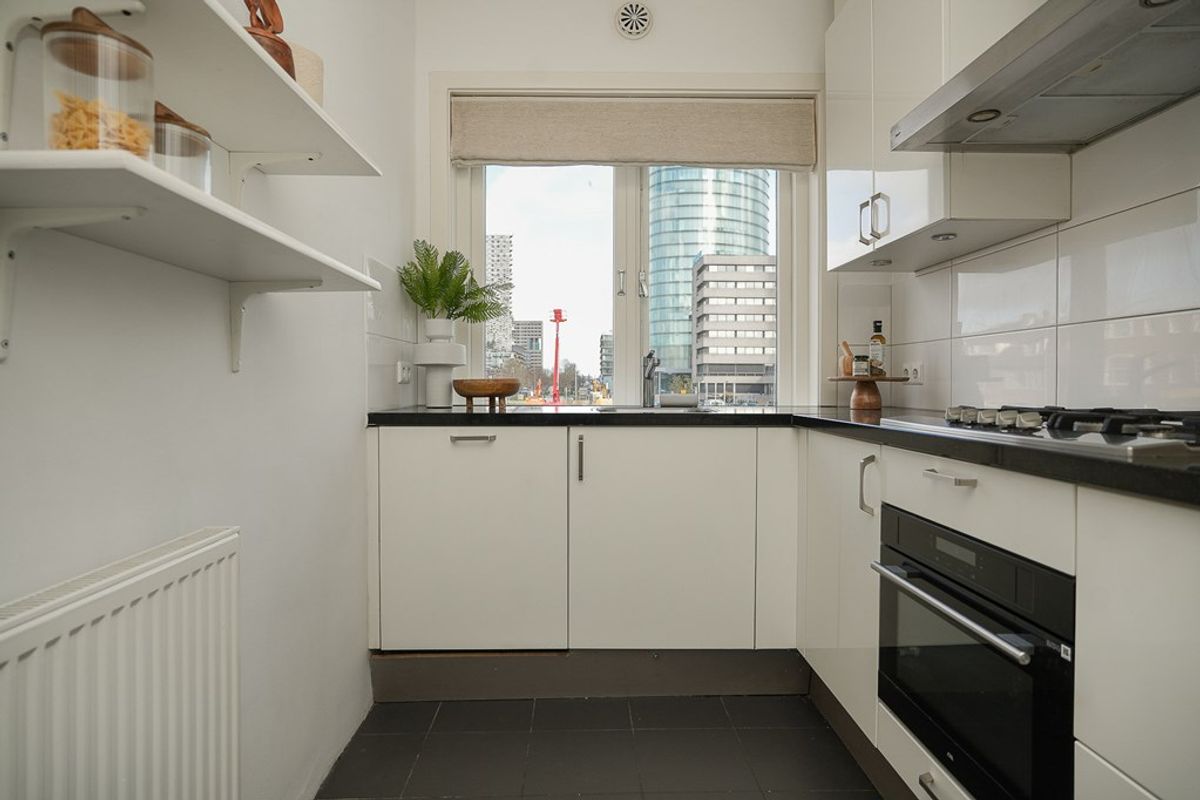 De gesloten keuken is voorzien van diverse inbouwapparatuur, zoals een gaskookplaat, afzuigkap, oven en koelkast. Daarnaast is er voldoende kastruimte aanwezig voor het opbergen van keukengerei en voorraad.