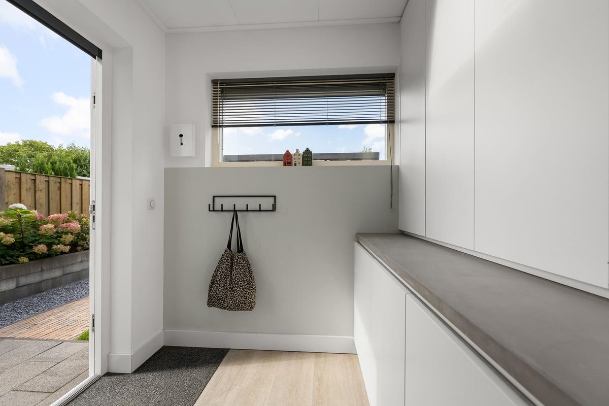 Via de verzorgde voortuin, met zitje én plek voor fietsen, kom je binnen in een hal met net toilet en fonteintje. De doorzonwoonkamer is breed opgezet en opvallend licht, met een PVC vloer met vloerverwarming op een betonnen ondergrond, ideaal voor comfortabel wonen. De woonkamer loopt vloeiend over in de halfopen keuken, voorzien van diverse inbouwapparatuur w.o. een Quooker. Via de keuken bereik je de ruime bijkeuken in de uitbouw: voorzien van veel kastruimte en opbergmogelijkheden. Een ideale plek voor jassen, schoenen en tassen, zeker voor kinderen die via de achterom naar binnen komen.