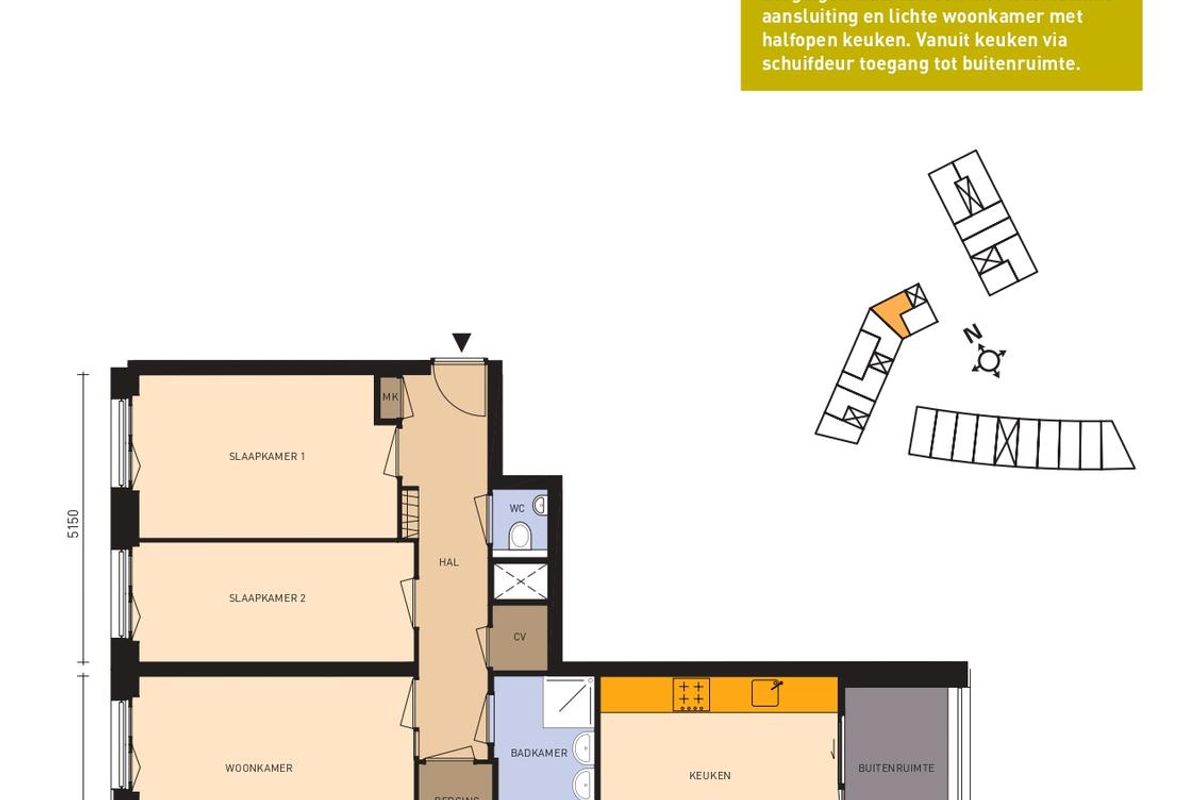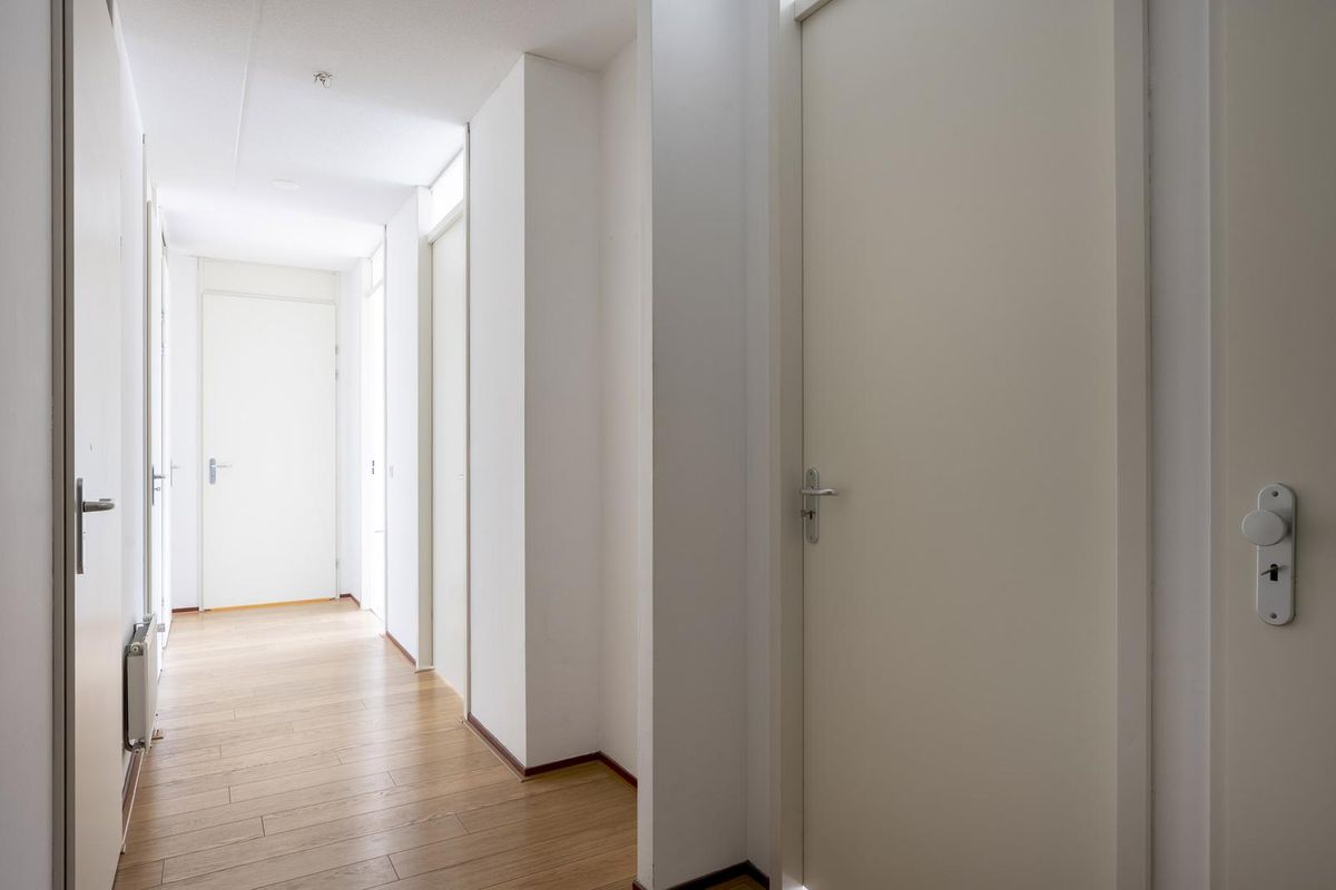 - Hal met gang v.v. toegang tot de meterkast, twee slaapkamers, woonkamer, berging, badkamer, technische ruimte en toiletruimte;
