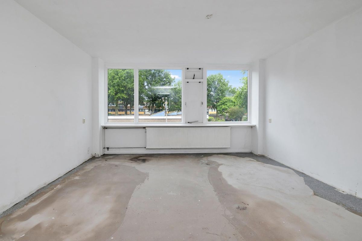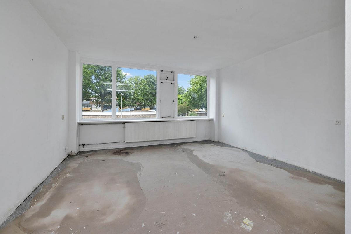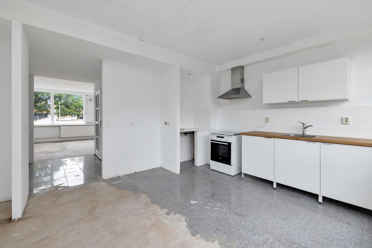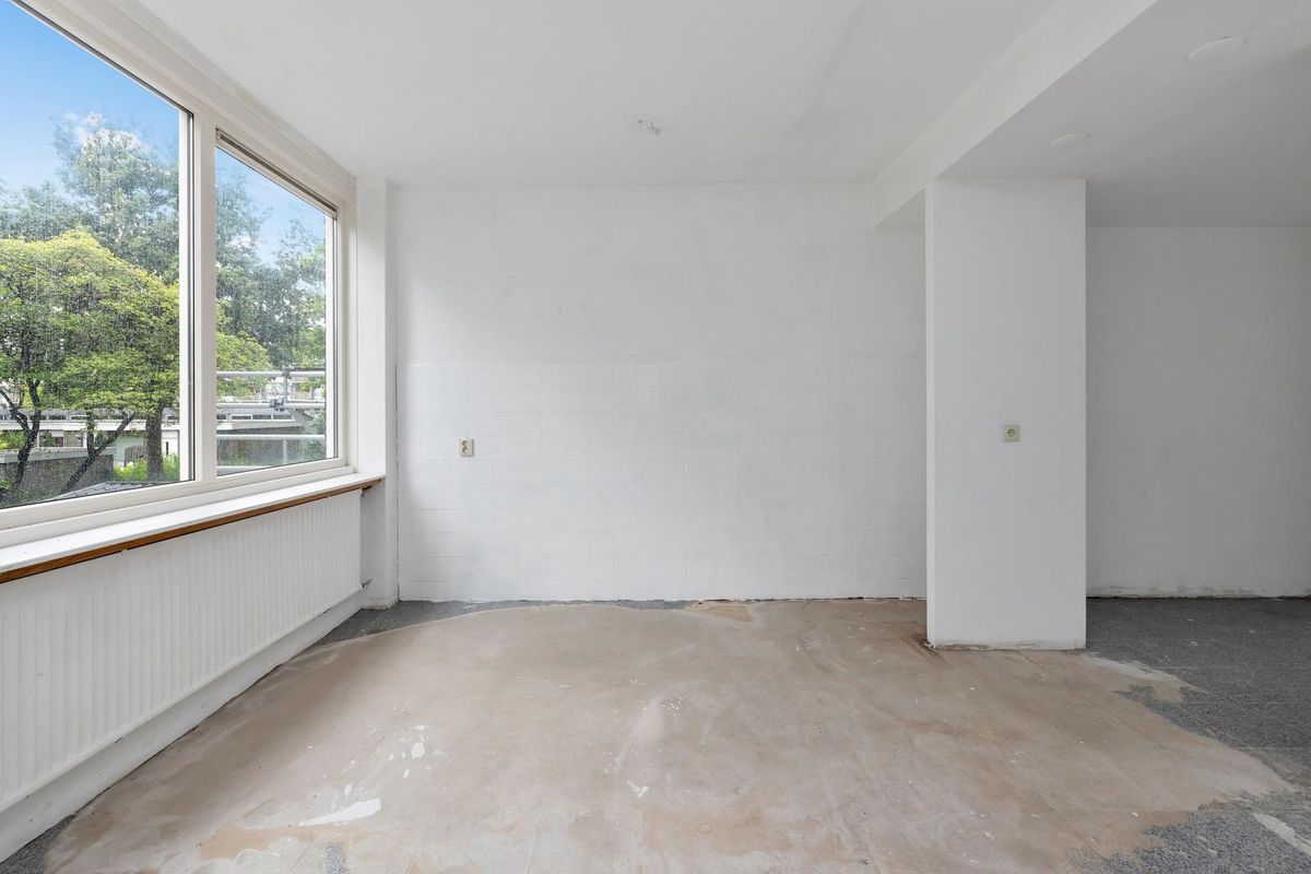 Op de eerste verdieping bevindt zich de lichte en ruime woonkamer met zitgedeelte aan de voorzijde. Aan de achterzijde is de open leefkeuken gesitueerd, voorzien van een eenvoudig doch functioneel keukenblok. De verdieping voelt ruimtelijk aan door de grote raampartijen en rechte wanden.