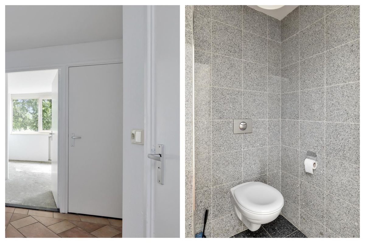 • Een separate toiletruimte met vrijhangend wandcloset en fonteintje