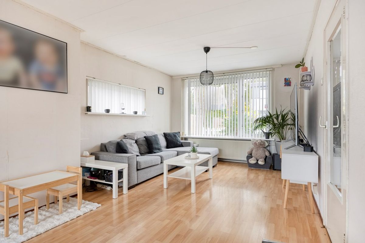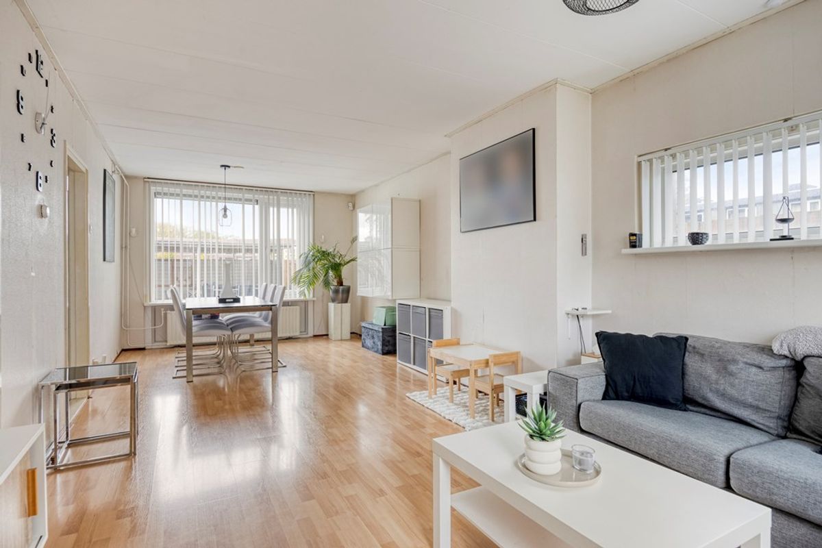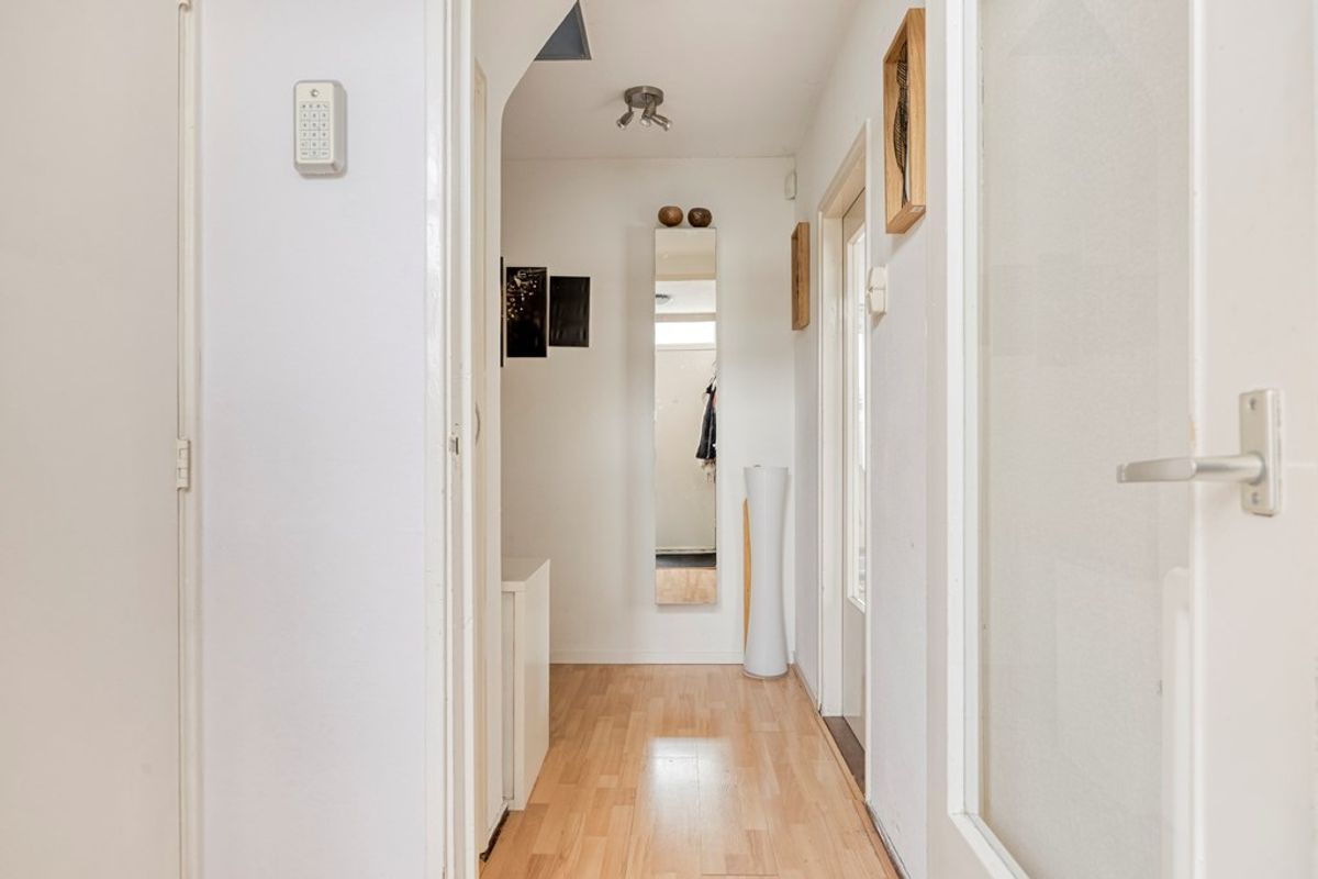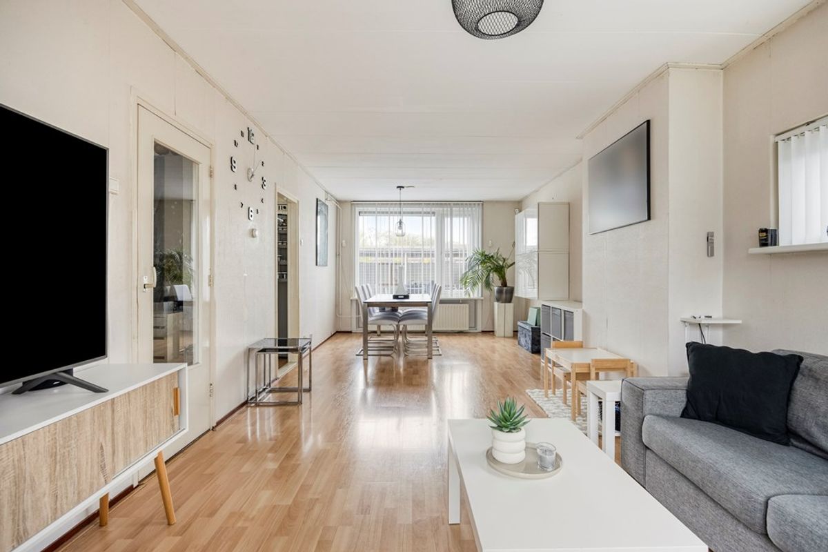 Via de ruime voortuin kom je binnen in de hal met toegang tot de lichte woonkamer (ca. 11 m²) en de aangrenzende eetkamer (ca. 18 m²), samen goed voor een sfeervolle leefruimte met veel natuurlijk licht.