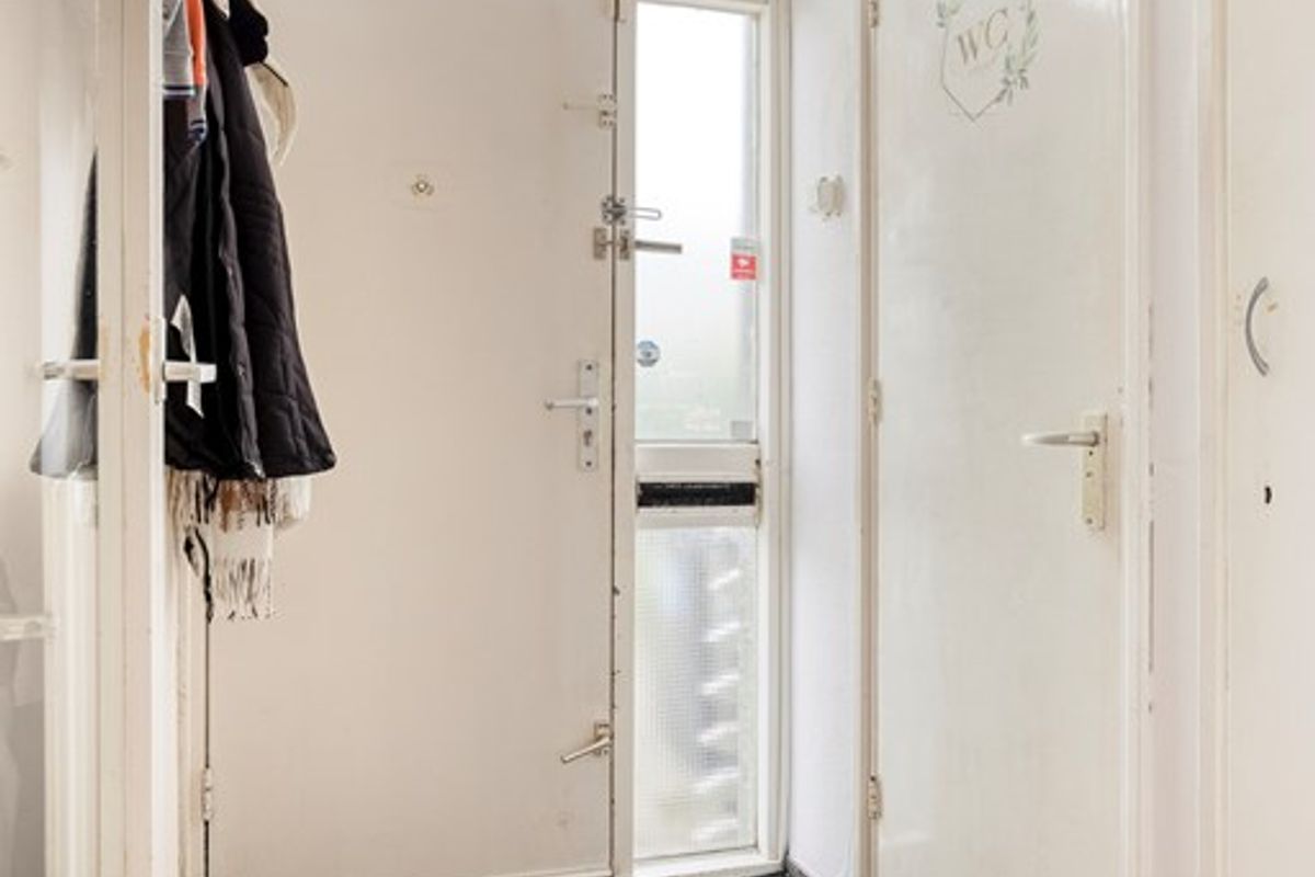 Aan de achterzijde bevindt zich een slaapkamer op de begane grond, ideaal voor gasten, werken aan huis of gelijkvloers wonen. Daarnaast is er een apart toilet en diverse praktische ruimtes die gebruikt kunnen worden als berging, wasruimte of kantoor. Vanuit de keuken is er directe toegang tot de ruime achtertuin met overkapping en vrijstaande berging.