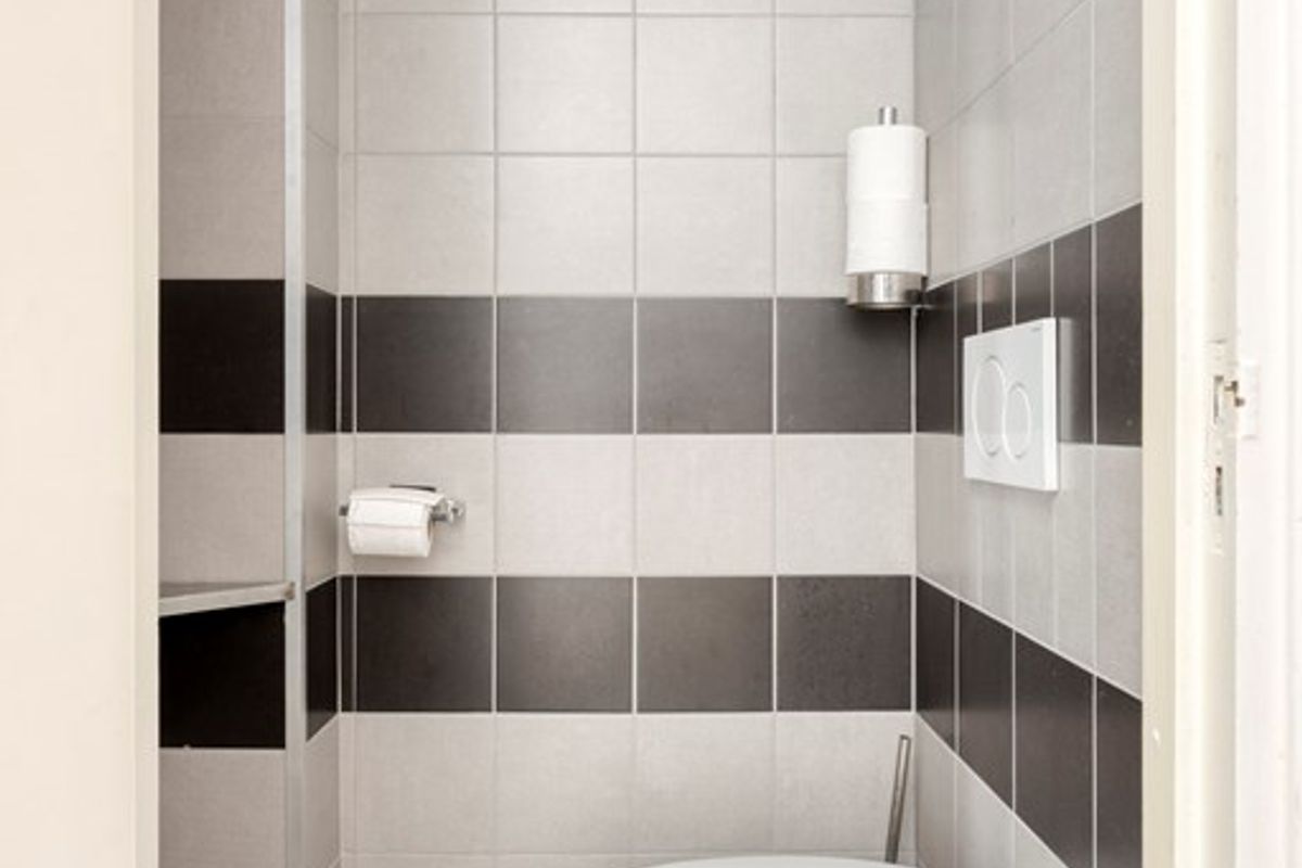 De badkamer (ca. 3,4 m²) is voorzien van een douche, wastafel en toilet.