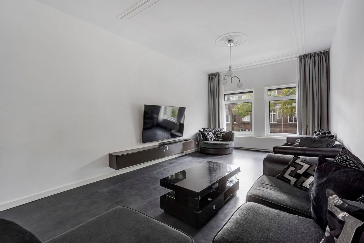 Entree op straatniveau, hal v.v. meterkast en binnentrap naar de woonverdieping. 1e verdieping. Overloop v.v. toilet en toegang tot alle vertrekken. De woonkamer is zeer riant opgezet met prachtige plafondlijsten, gestuukte muren en grote raampartijen waardoor u een zee aan lichtinval ervaart. De keuken is modern uitgerust en voorzien van 4 pits gaskookplaat, afzuigkap, oven, vaatwasser en vanuit de keuken toegang tot het balkon. De naastgelegen berging is v.v. droger aansluiting. De tweede berging is ideaal te gebruiken als voorraadkast. Keurig hangend toilet met fontein. Aan de voorzijde treft u de eerste (slaap)kamer aan welke tal van doeleinden kan hebben.