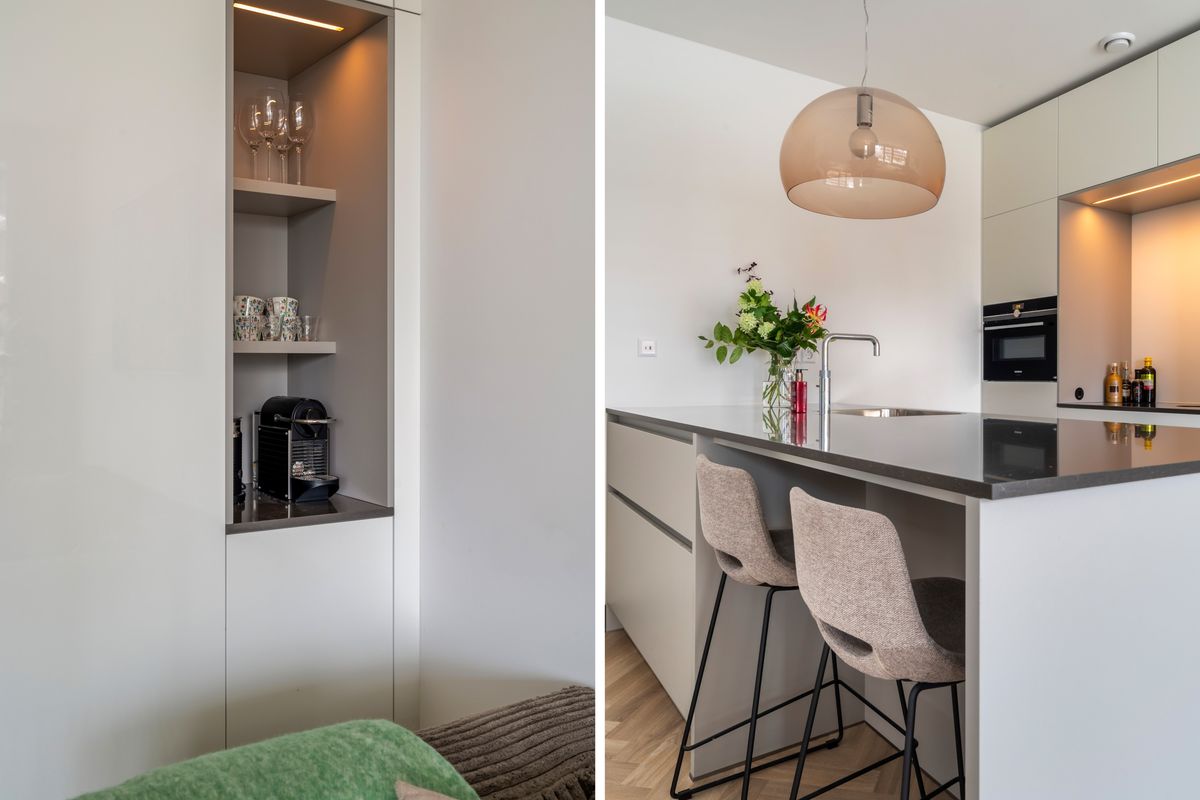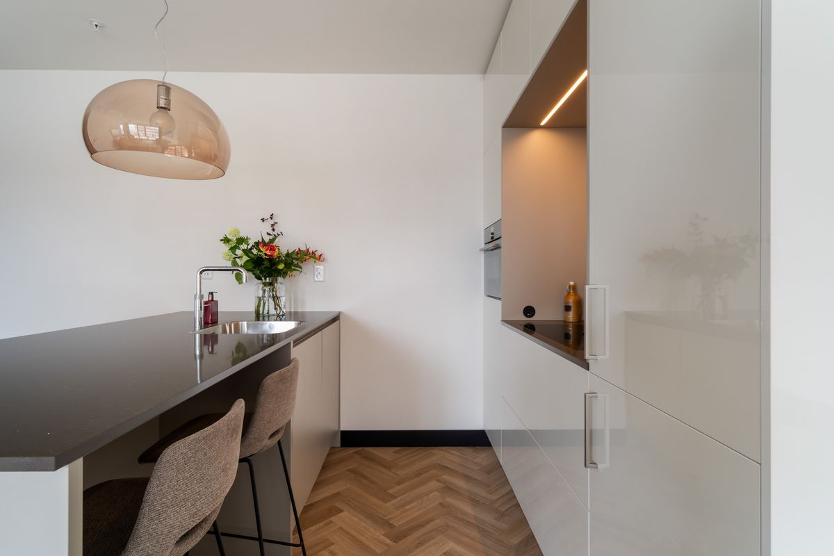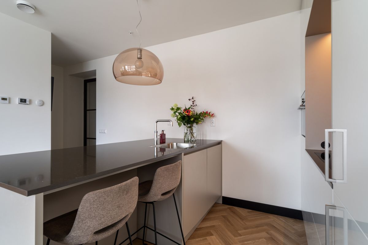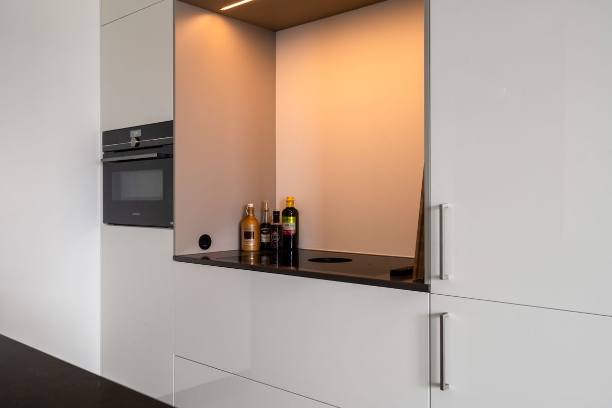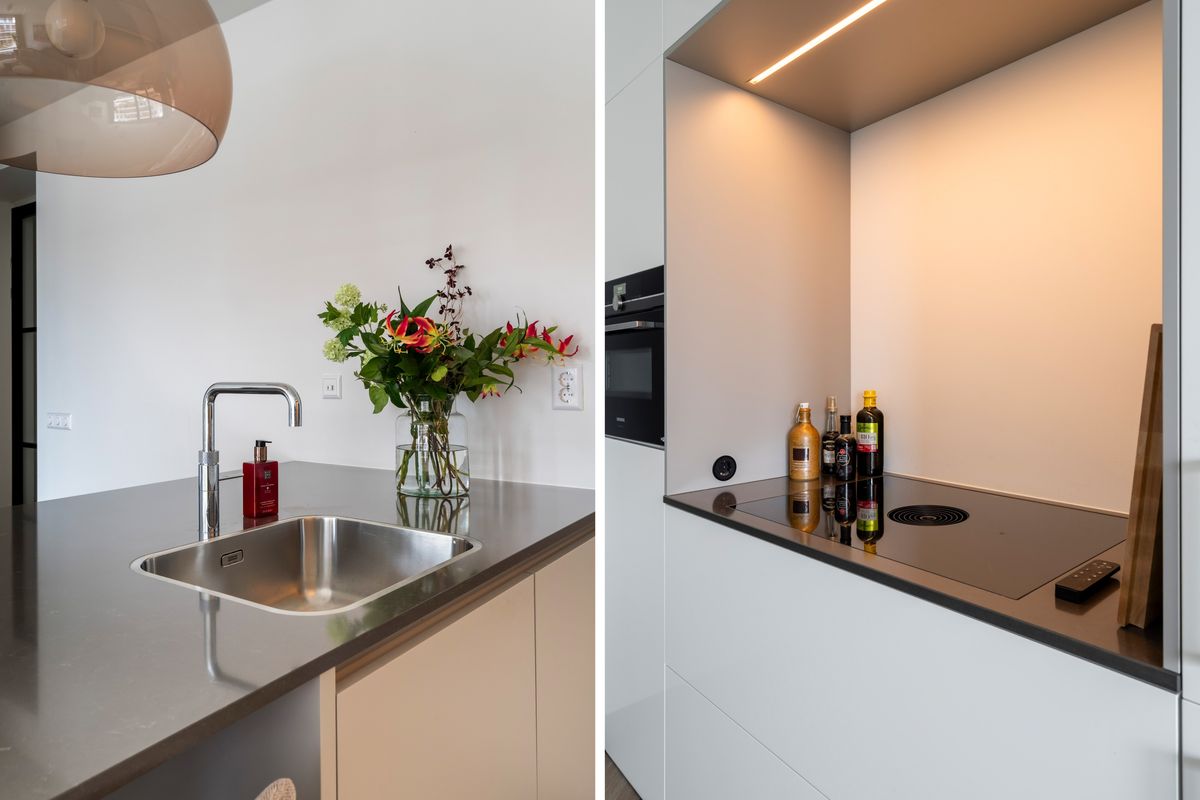 De keuken is open, modern en hoogwaardig afgewerkt. Voorzien van een Leicht keuken met een composieten werkblad, een Bora Pure inductiekookveld met geïntegreerde afzuiging, een Quooker, en inbouwapparatuur van Siemens zoals een koel-vriescombinatie, vaatwasser en een oven-magnetroncombinatie. Alles is zorgvuldig gekozen voor comfort en gebruiksgemak, zonder in te leveren op stijl.