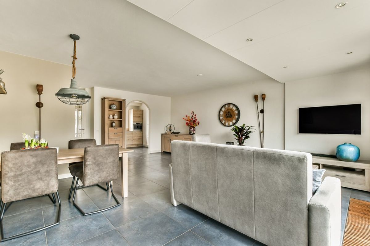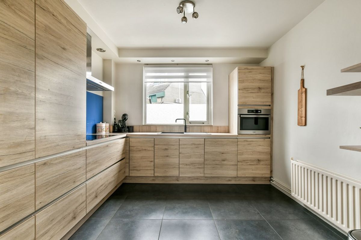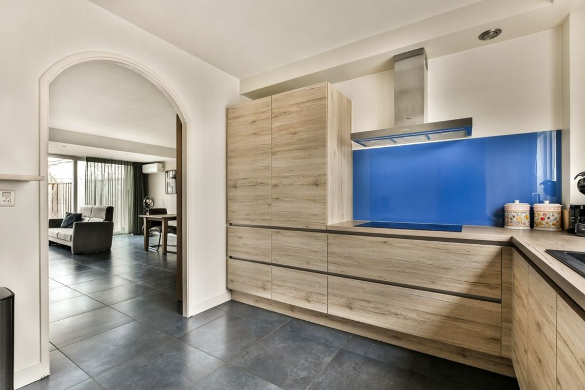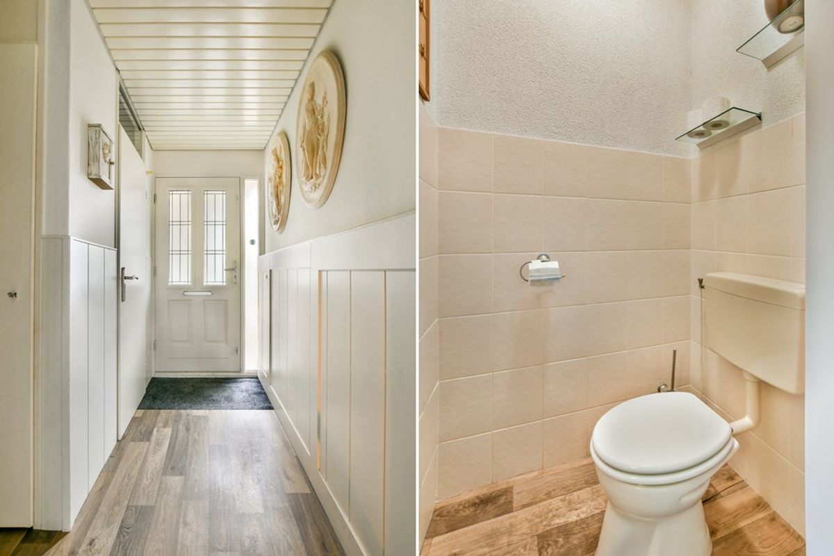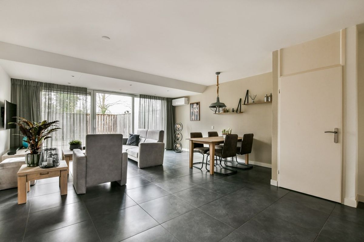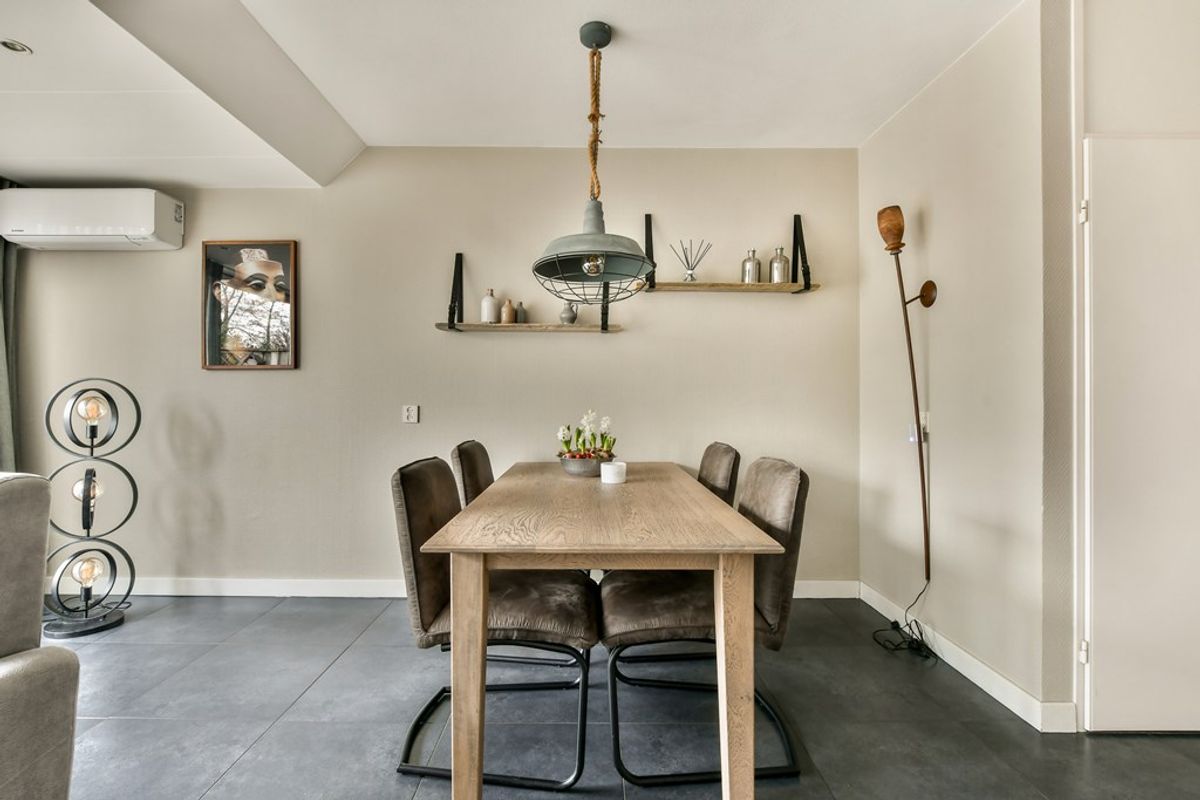 Overdekte entree in de hal voorzien van de meterkast, de nette en deels betegelde toiletruimte en de trapopgang. De ruime woonkamer met airconditioning en convectorverwarming is aan de achterzijde uitgebouwd en voorzien van schuifdeuren richting de onderhoudsvriendelijke en zonnige achtertuin. De vloer is voorzien van mooie vloertegels en er is een praktische, royale trapkast. Via een toog is de moderne keuken bereikbaar, deze is in L-opstelling zo’n 7 jaar geleden geplaatst en van alle gemakken voorzien. Zo beschikt deze onder andere over een inductiekookplaat, combi-oven/magnetron, vaatwasser, koelkast en vriezer.