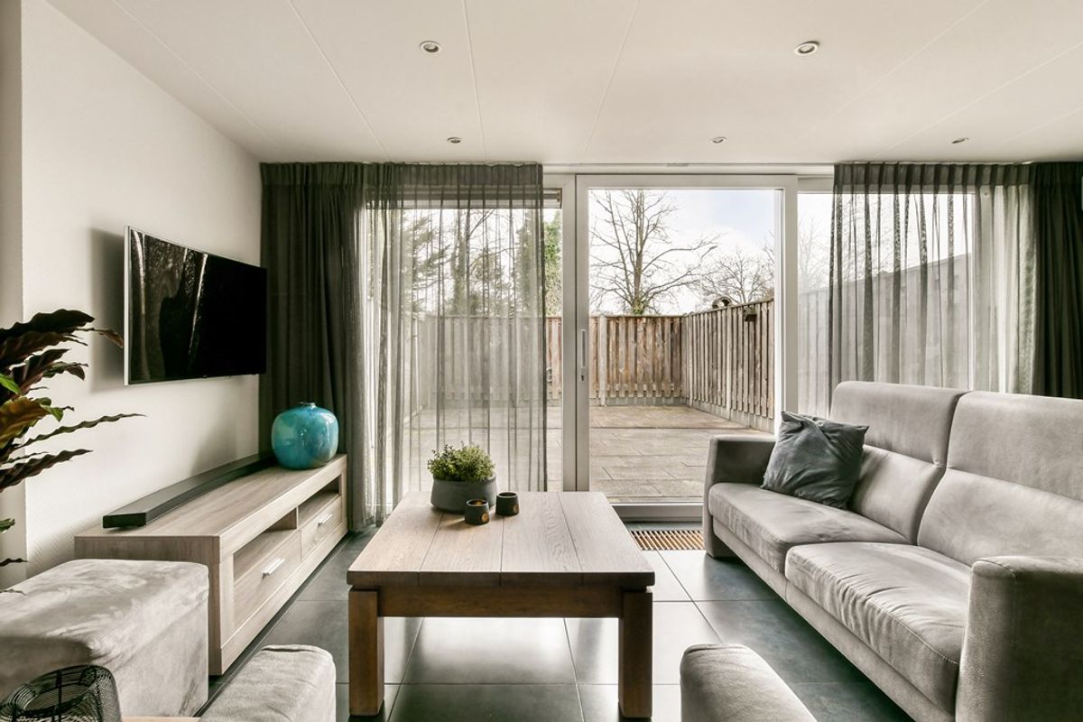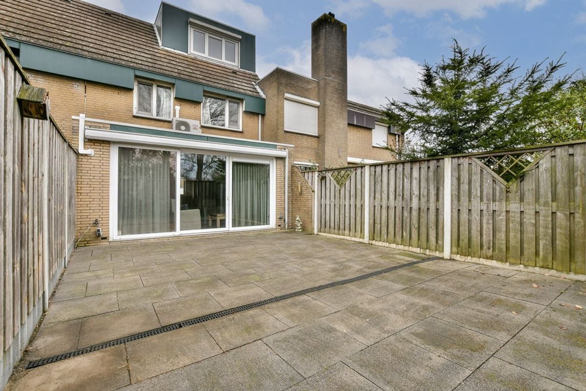 De onderhoudsvriendelijke achtertuin ligt op het zonnige zuidwesten en is volledig bestraat. Je kunt hier naar eigen wens een invulling aan geven en eventueel een achterom creëren. Aan de aanbouw bevindt zich een zonnescherm.
