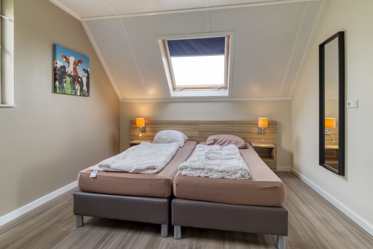 De slaapkamer op de begane grond beschikt over een tweepersoonsbed, een eigen televisie, openslaande deuren naar de tuin en een badkamer ensuite.