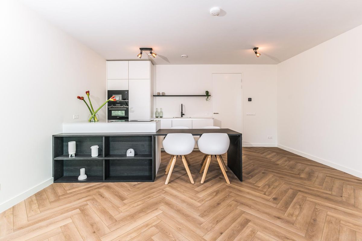 Bij binnenkomst in het appartement treft u de ruime hal met toegang tot alle vertrekken. De woning is afgewerkt met een elegante visgraatvloer en stijlvolle gordijnen (niet zichtbaar op de foto’s).