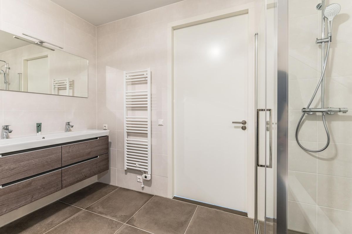 Het appartement beschikt over twee slaapkamers, waarvan de master bedroom is voorzien van een ingebouwde kledingkast. De badkamer is hoogwaardig afgewerkt met grote tegels, een inloopdouche en een brede wastafel. Daarnaast is er een aparte wasruimte met een nieuwe wasmachine en droger, die tevens als berging kan dienen.