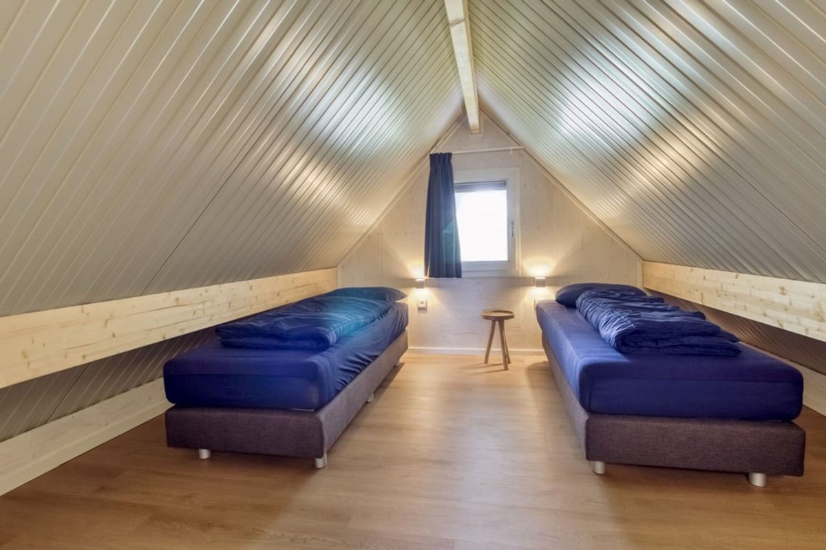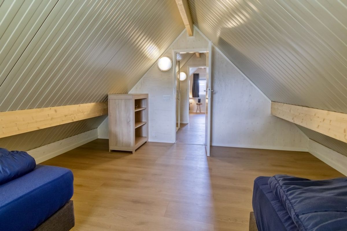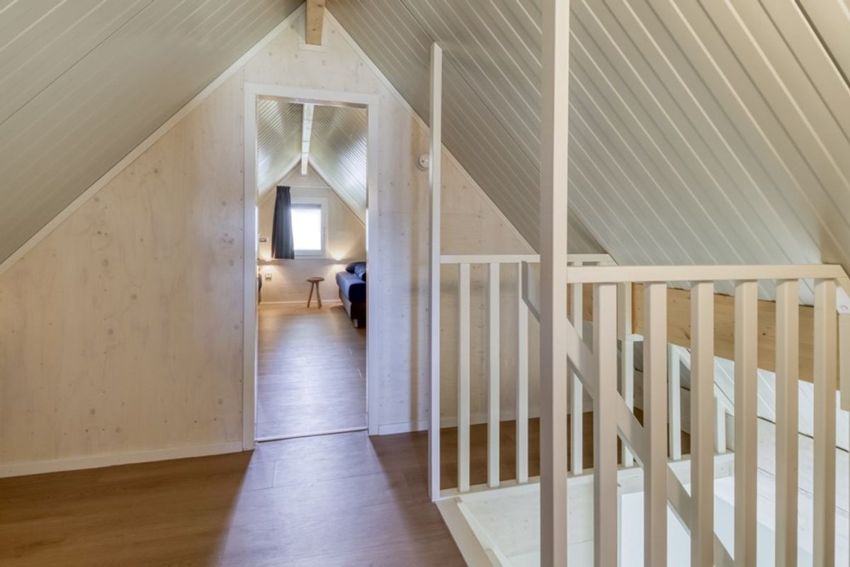 Via de trap in de woonkamer komt u op de eerste verdieping. Vanaf de overloop zijn er twee slaapkamers te bereiken.