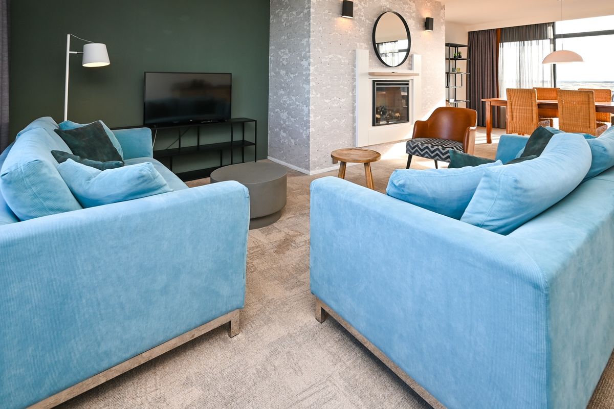 TE KOOP: Luxe 4-persoons Family Suite in Paal 8 Hotel aan Zee, met panoramisch uitzicht over de Noordzee en duinen.