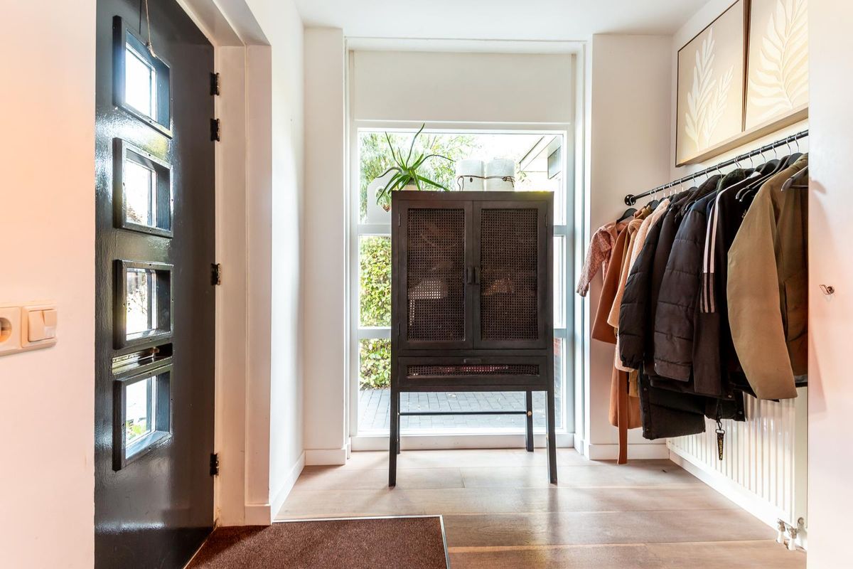 Via de voordeur, grenzend aan de oprit, stap je binnen in de ruim opgezette hal. Hier bevinden zich de vernieuwde meterkast, het nette toilet en de trapopgang naar de eerste verdieping. Ook vind je hier de deur naar de tuingerichte woonkamer.
