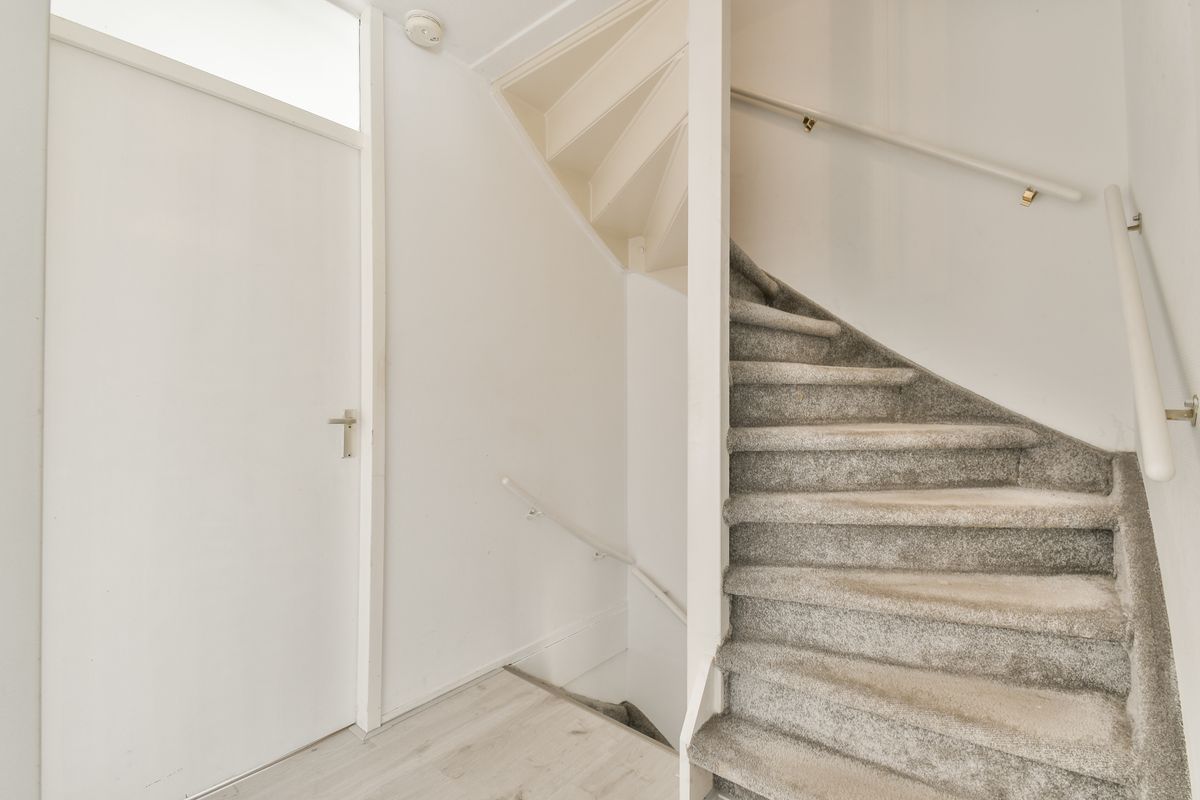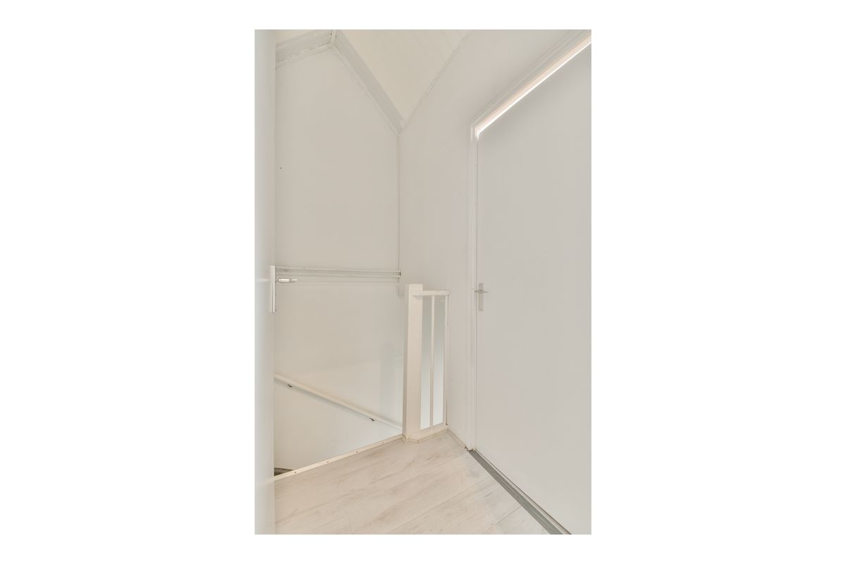 2e verdieping: Met de vaste trap bereik je de tweede verdieping. Hier bevind zich een ruime slaapkamer met een ruime welke als berging kan worden gebruikt.