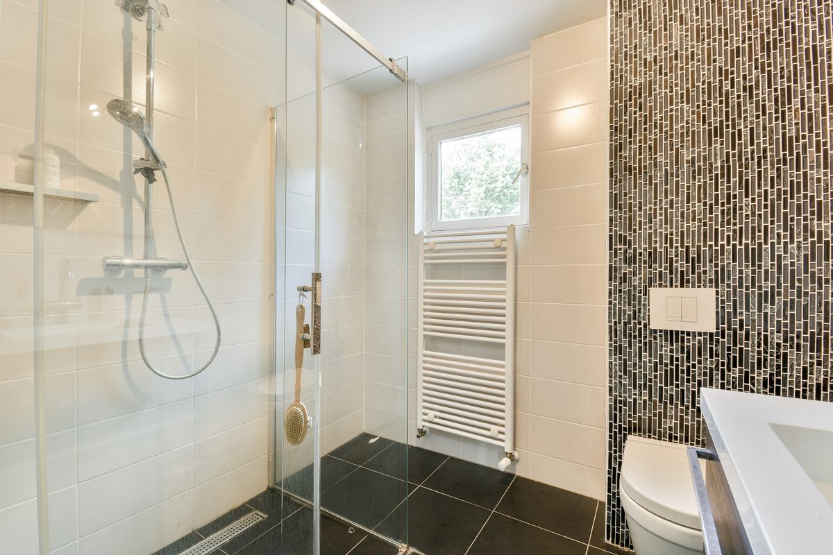 1e verdieping: Via de royale overloop bereik je de drie slaapkamers en de ruime badkamer. De badkamer is geheel betegeld en is voorzien van een douche, wastafel met meubel en een 2e toilet.
