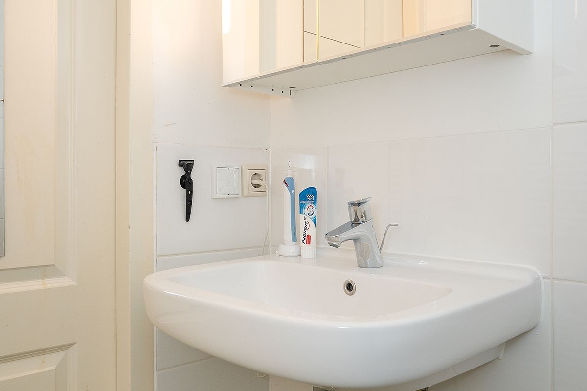 Badkamer met wastafel en douche