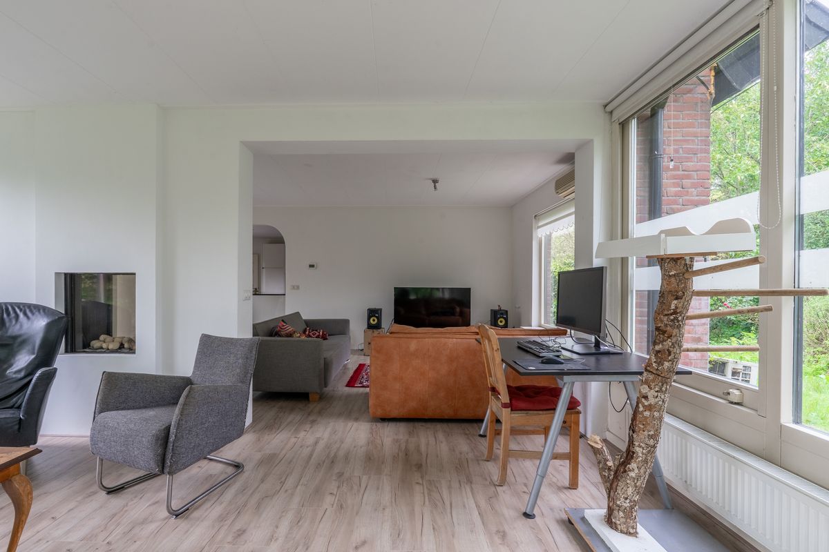 Entree met trapopgang, garderobekamer, provisiekast en meterkast. Vanuit de hal kom je in de moderne leefkeuken met kookeiland en baropstelling – een echte centrale plek in huis. De keuken staat in open verbinding met de lichte woonkamer, voorzien van serre, sfeervolle gashaard en grote raampartijen die het prachtige uitzicht omlijsten.