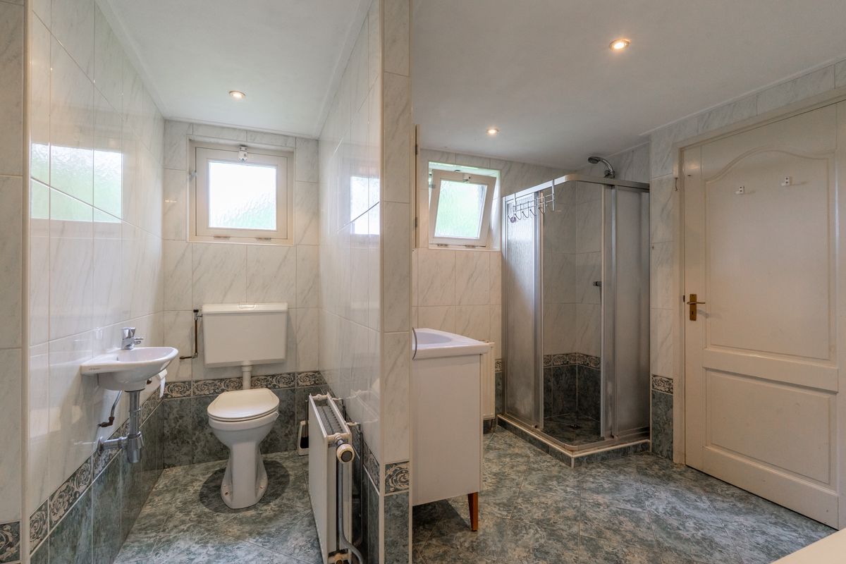 Ruime overloop met cv-ruimte en tweede badkamer voorzien van douche, toilet en wastafel. Verder twee slaapkamers met fraaie nokhoogte en indrukwekkend uitzicht op de omgeving.