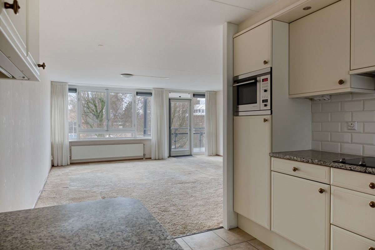 De lichte en royale woonkamer valt direct op door de grote raampartijen en de prettige lichtinval. Vanuit de woonkamer heeft u toegang tot het balkon, waar u heerlijk kunt genieten van het vrije uitzicht en de groene omgeving. Het balkon is ruim genoeg voor een zitje en biedt een fijne buitenruimte gelegen op het westen.