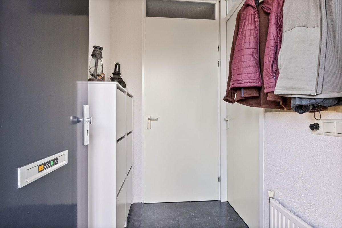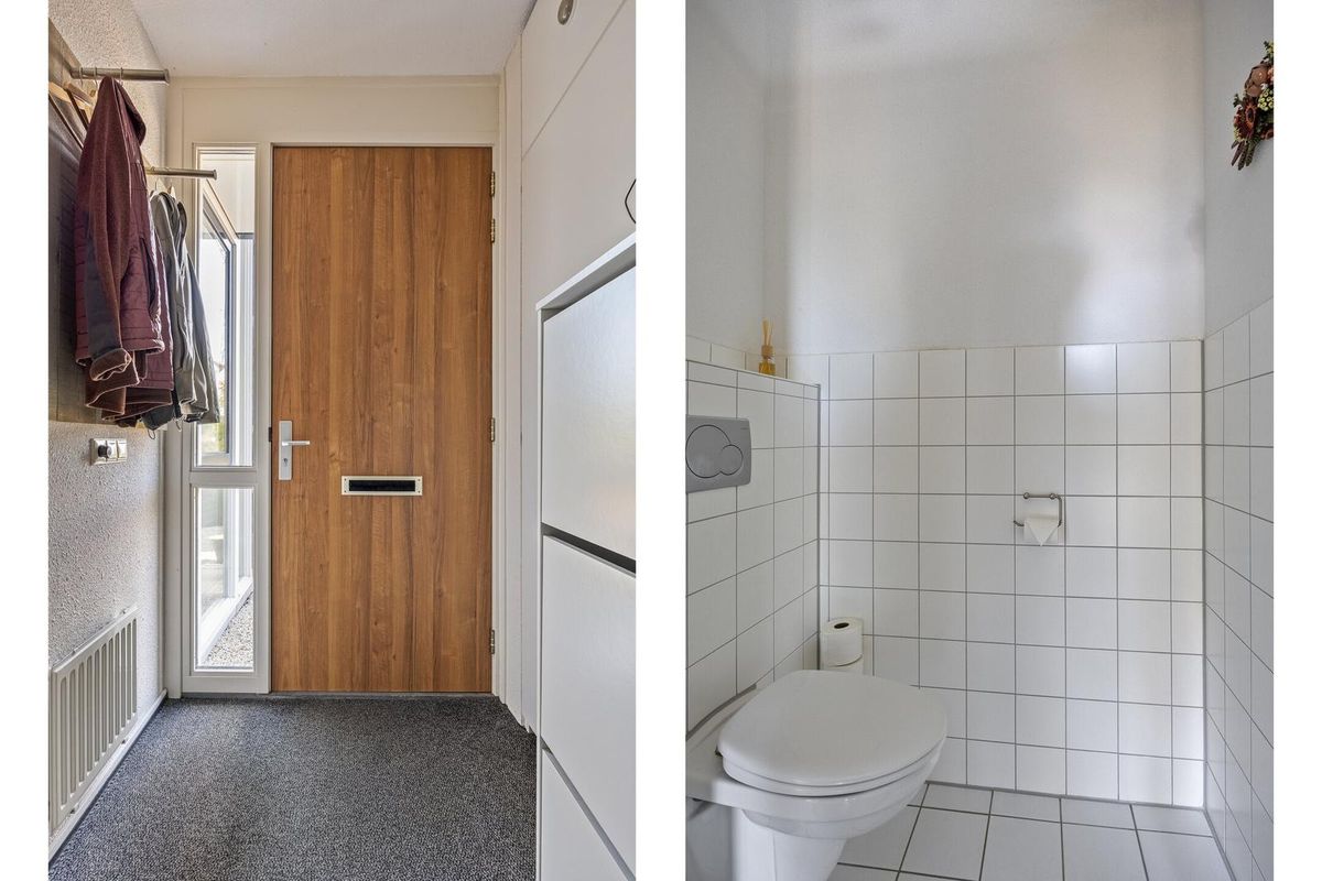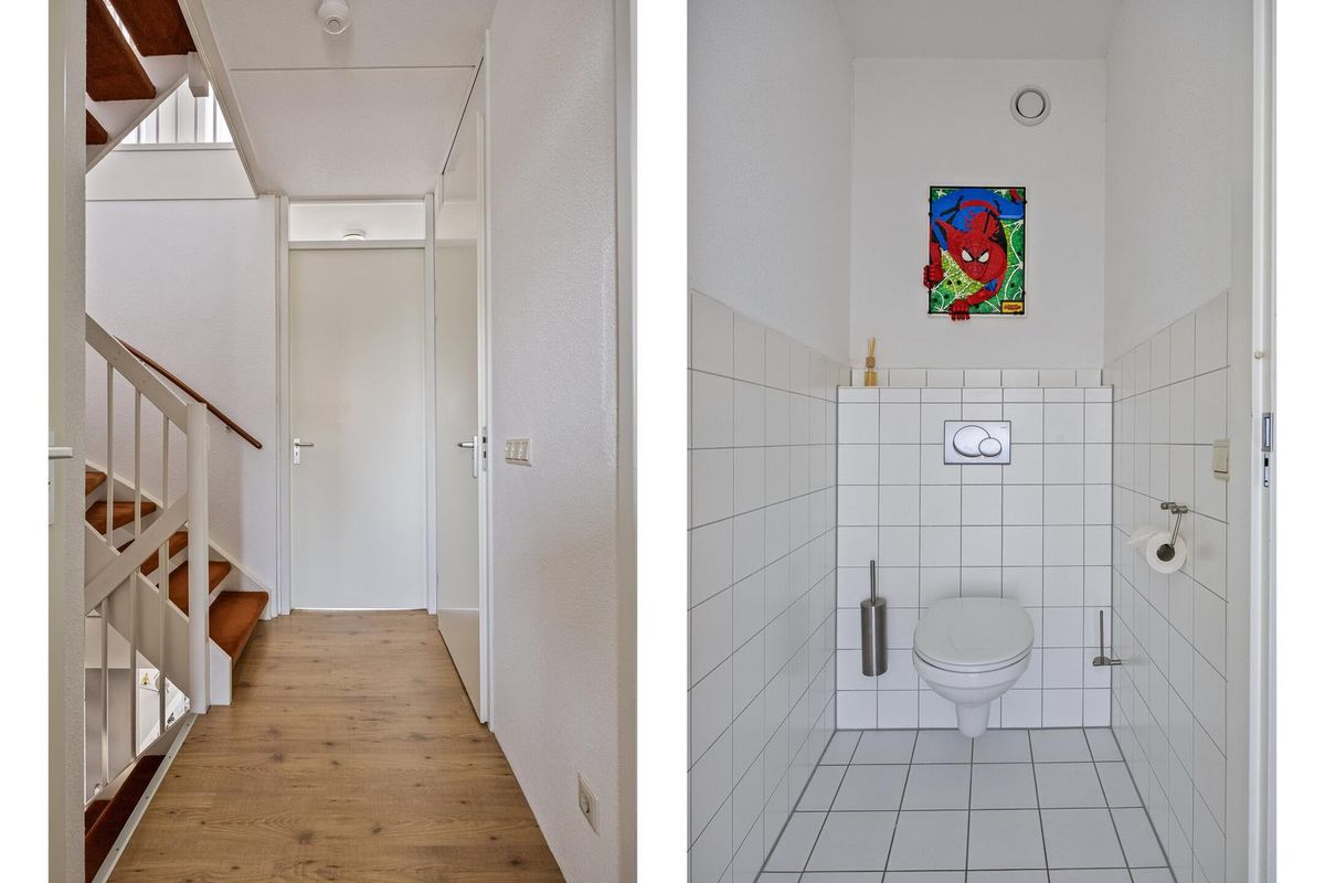 Entree/hal met toiletruimte, meterkast en toegang naar de open keuken en woonkamer. De gehele begane grond is voorzien van een mooie tegel laminaatvloer. De keuken ligt aan de voorzijde van de woning, heeft grote raampartijen van onder tot boven. Samen met de raampartij van de woonkamer aan de achterzijde over bijna de gehele breedte van de woning, zorgt dit voor onwijs veel daglicht en een prettige leefomgeving. Via de dubbel openslaande deuren loop je zo de tuin in, waar je heerlijk kunt zitten onder de overkapping!
