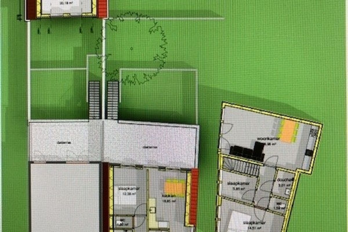2 appartementen voorzien van tuin, 1 appartement met dakterras.