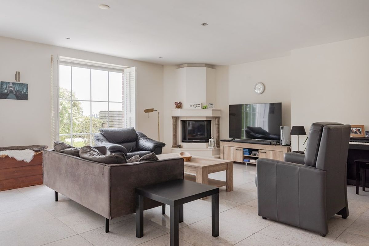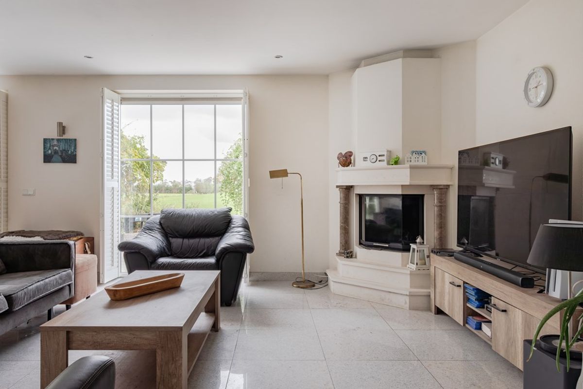Een royale living met enorm veel lichtinval vanwege de raampartijen tot aan de vloer in kuststof kozijnen en geïntegreerde roeden in het dubbel HR glas met ventilatieroosters en shutters voor alle ramen. Vanuit de living, de eethoek en de keuken heeft u zicht over de weilanden, een uitzicht wat nooit verveeld! Voor de hele koude dagen is er een open haard met een schuifraam dus veilig als u naar bed gaat er het vuur nog niet is gedoofd. De wanden zijn spachtelputz gestuukt en het plafond is strak gestuukt met inbouwspots voor de lokale verlichting. Openslaande deuren, ook met shutters, geven toegang tot de tuin.