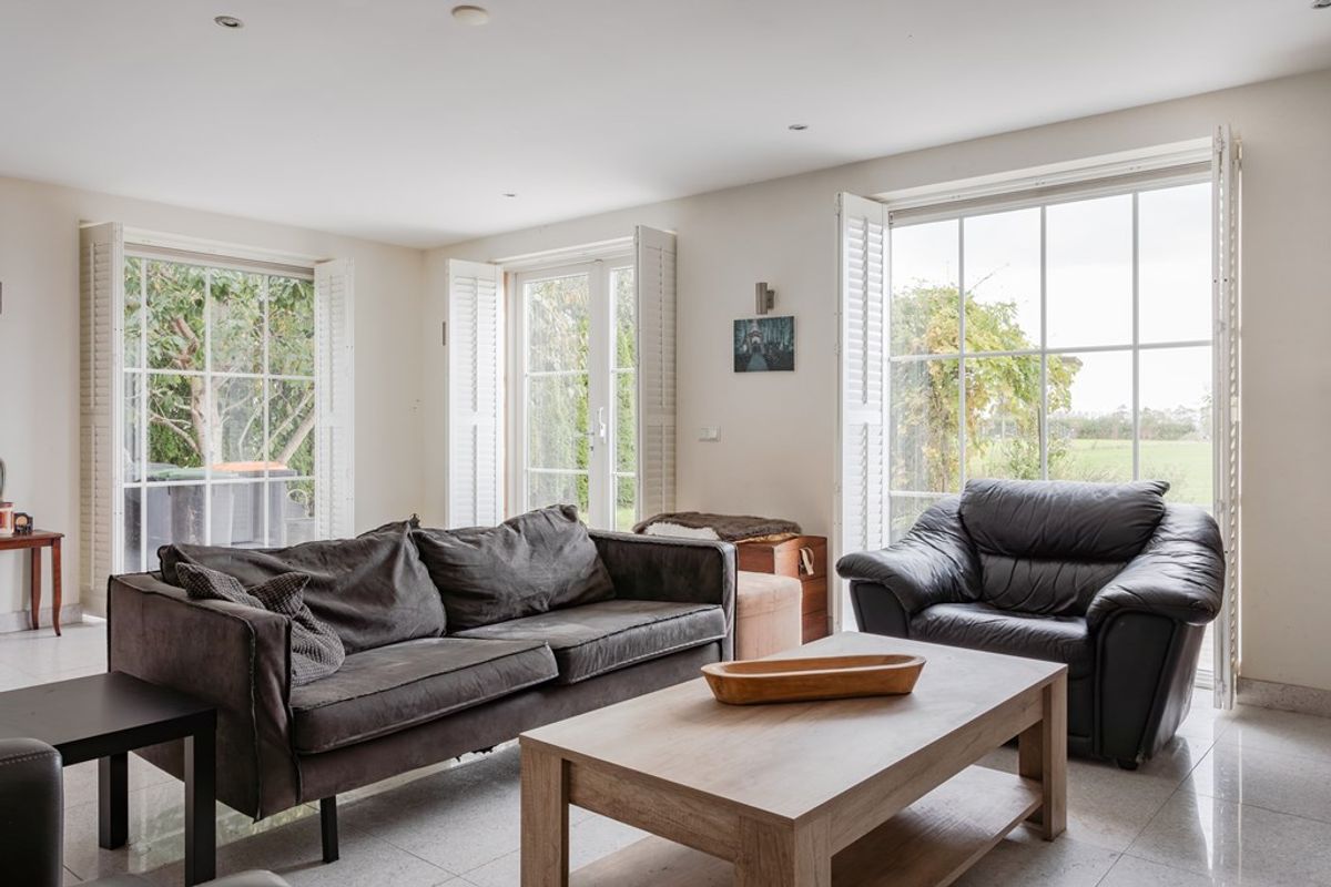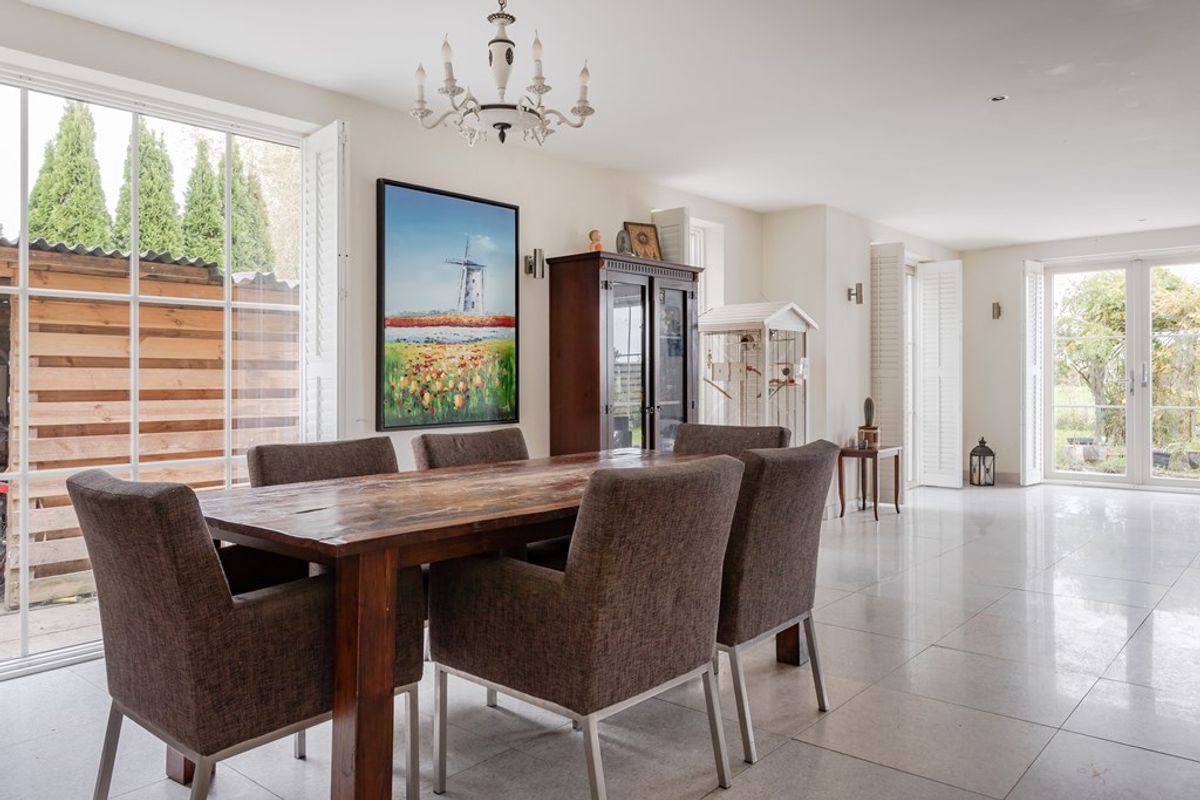 Vrijstaande woning met enorm veel lichtinval en spectaculair uitzicht over de weilanden. Bij binnenkomst zal u het licht en de ruimte direct ervaren. Er is een ruime hal met de trapopgang naar een vide, de ruim 9 meter diepe garage is inpandig te bereiken en openslaande deuren geven toegang tot een riante living met veel lichtinval. Alle ramen tot aan de vloer hebben shutters wat een sfeervolle “touch” aan de woning geeft, er liggen lichte natuurstenen tegels met vloerverwarming, de wanden en het plafond zijn gestuukt. De ruime keuken heeft een kookeiland met bar, veel werkruimte en diverse inbouwapparatuur. Aansluitend een ruime bijkeuken/voorraadkamer en de slaapverdieping telt 5 slaapkamers, waarvan 1 kamer met een groot dakterras, een waskamer, ruime badkamer en tot slot nog een ruime wegzetzolder. De tuin met het uitzicht, meerdere terrassen, een pergola en een groot waterterras is beslist een sellingpoint bij deze woning. Wij zien u graag bij een bezichtiging waar u de sfeer zelf ook kan ervaren!