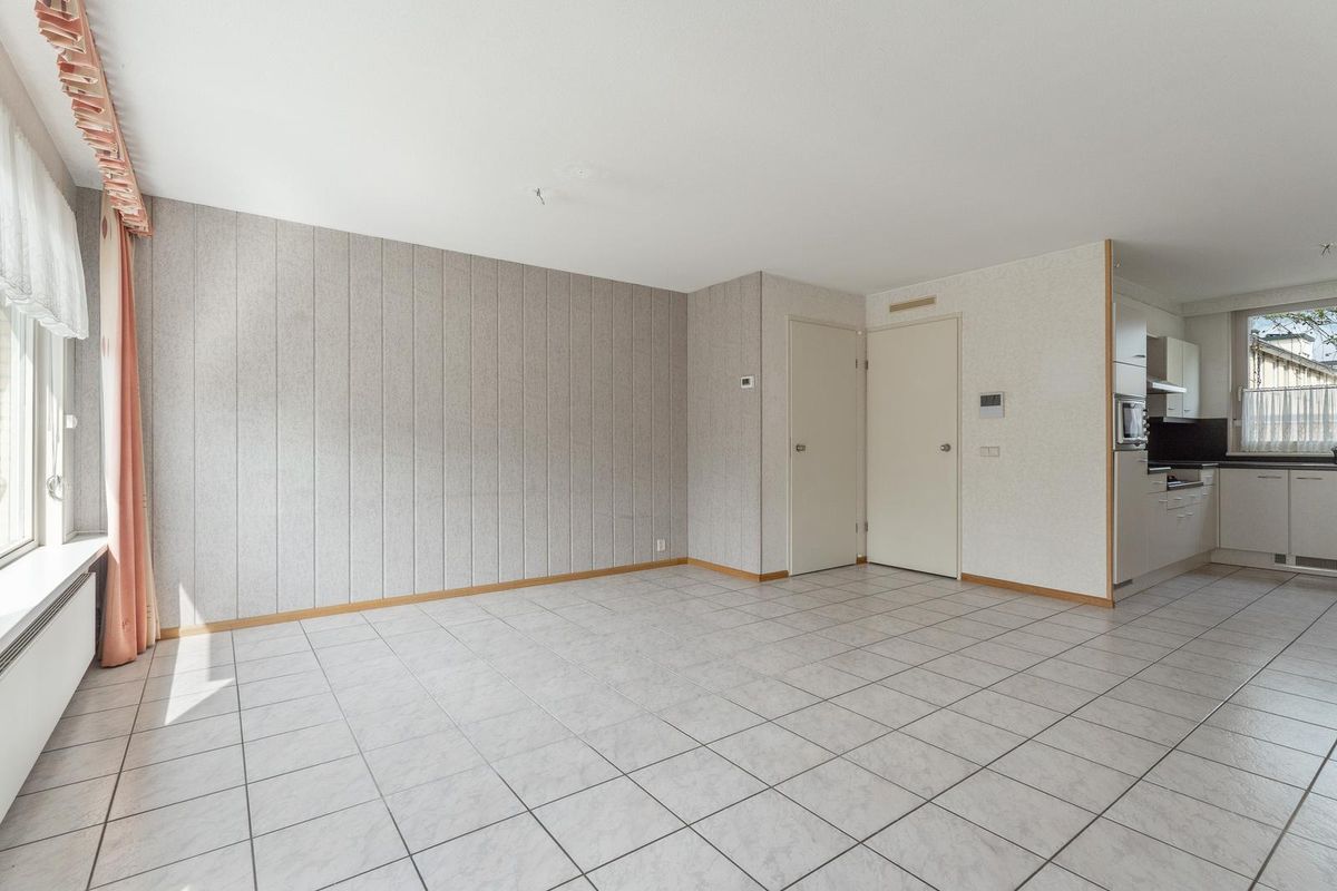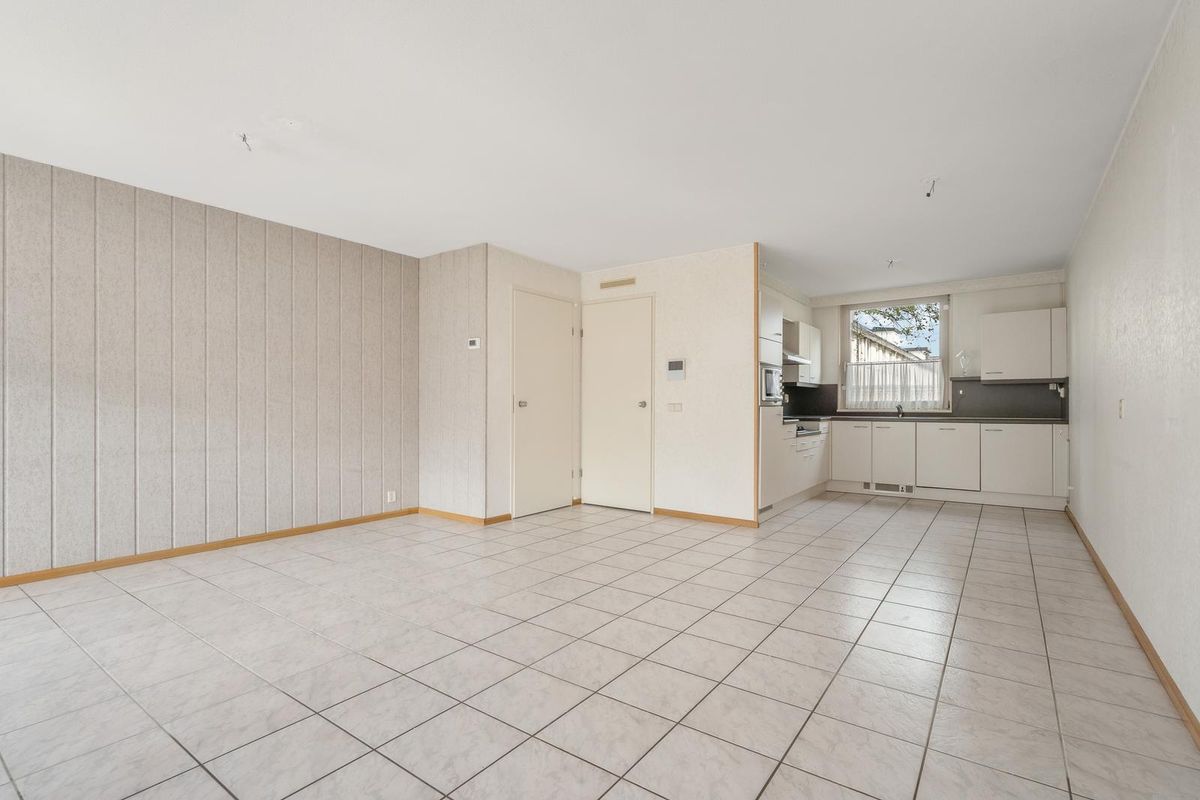 Bij binnenkomst stap je in de hal met meterkast en toegang tot het toilet en de ruime woonkamer. De tuingerichte woonkamer biedt veel lichtinval door de grote raampartijen aan de achterzijde. De halfopen keuken bevindt zich aan de voorzijde van de woning en kijkt uit op de rustige straat. Hoewel de afwerking enigszins gedateerd is, biedt de indeling veel mogelijkheden voor een open leefkeuken of moderne keukenopstelling.