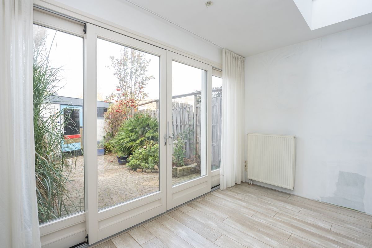 De royale woonkamer is aan de achterzijde uitgebreid en voorzien van een schuifpui. Dankzij de uitbouw en lichtstraat is de woonkamer uitzonderlijk ruim en licht.